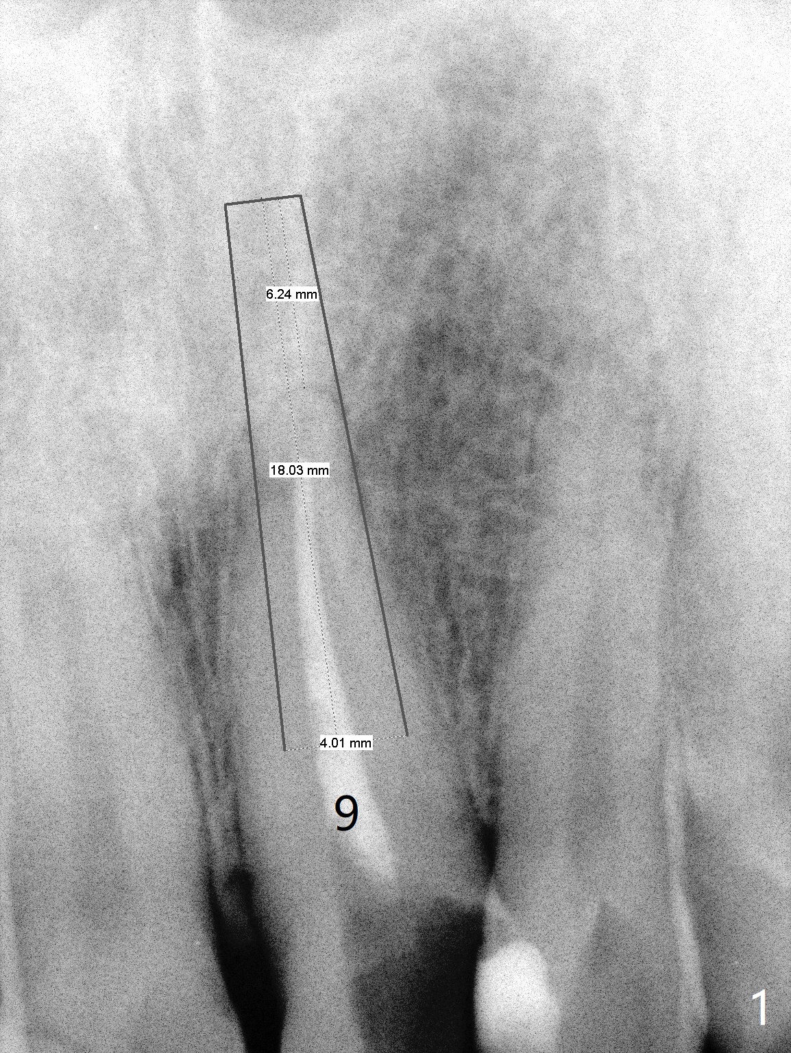 A 56-year-old man, bruxer, has multiple restoration. After tooth fracture at #9 (Fig.1), a post-supported crown is fabricated (Fig.2). The post/crown dislodges once, while the post fractures recently. To counter heavy mastication, a long implant will be placed. Take preop photos.