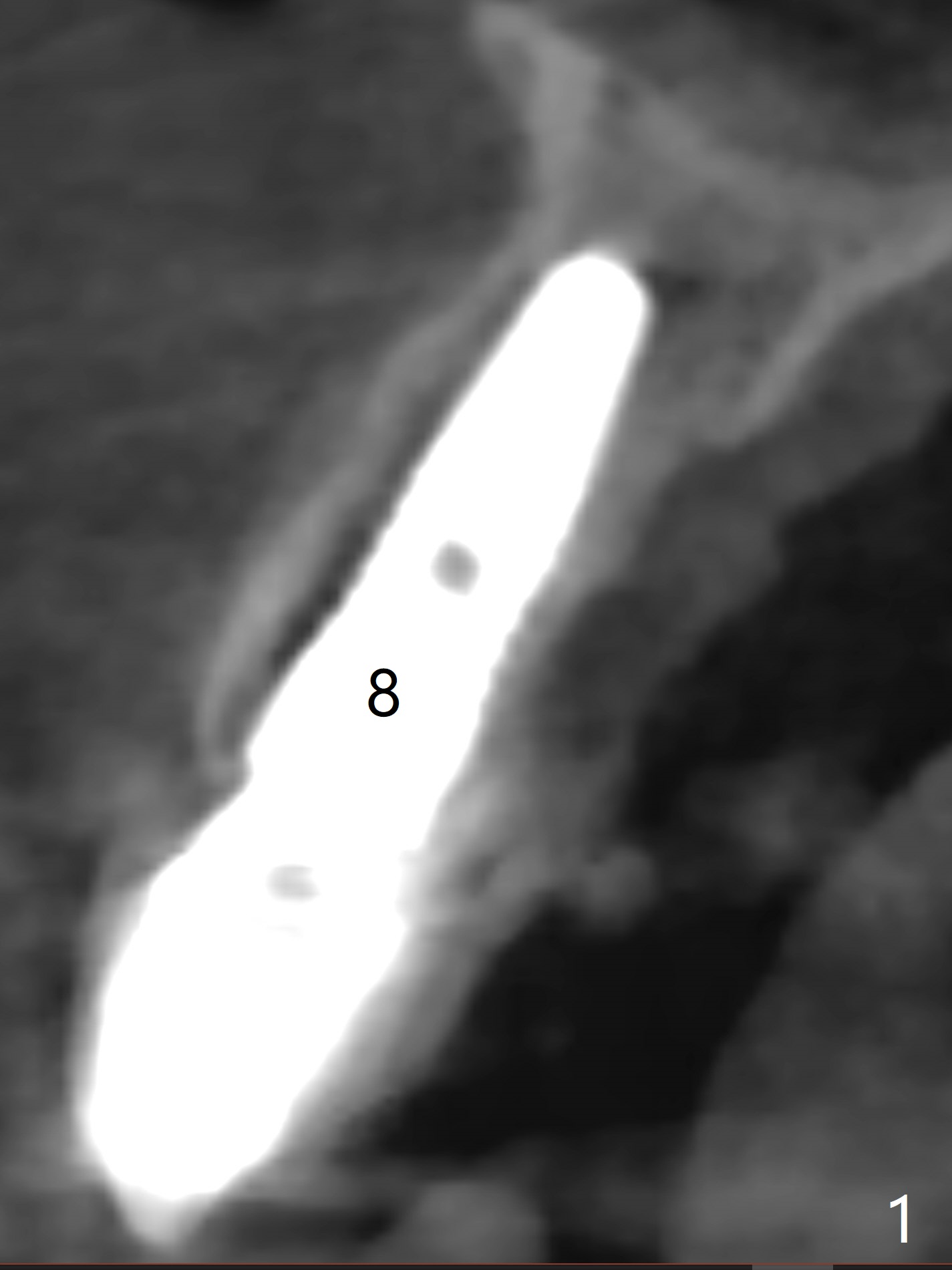 Two years 2 months post cementation (4.5x12 mm).