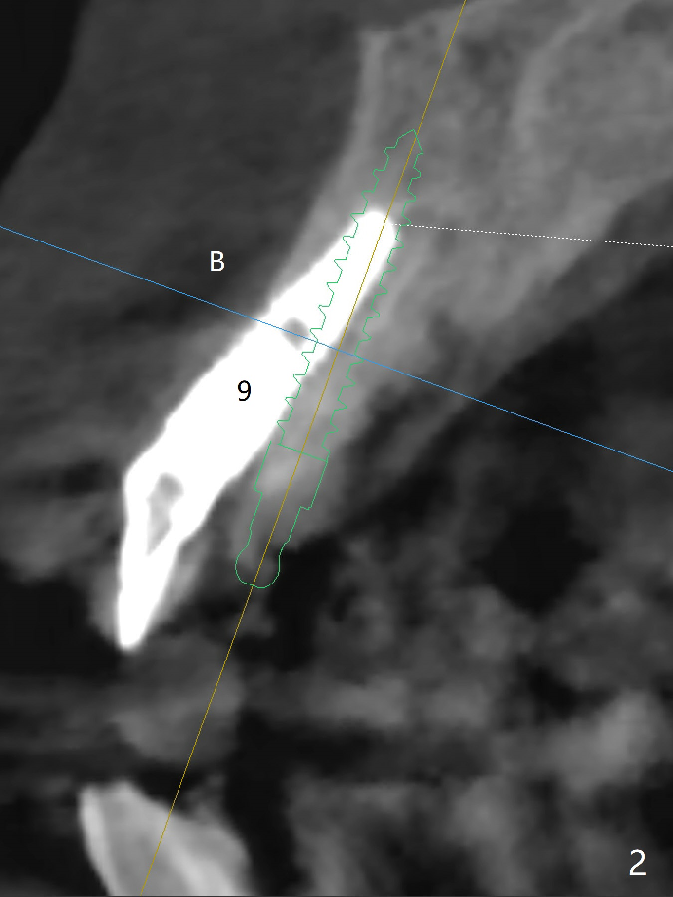 The 45-year-old woman does not like the protrusive crown at #9 as well and requests redo (Fig.1,2). A 2.5x14 mm 1-piece implant will be placed with guide immediately post removal to prevent post-removal buccal plate atrophy.