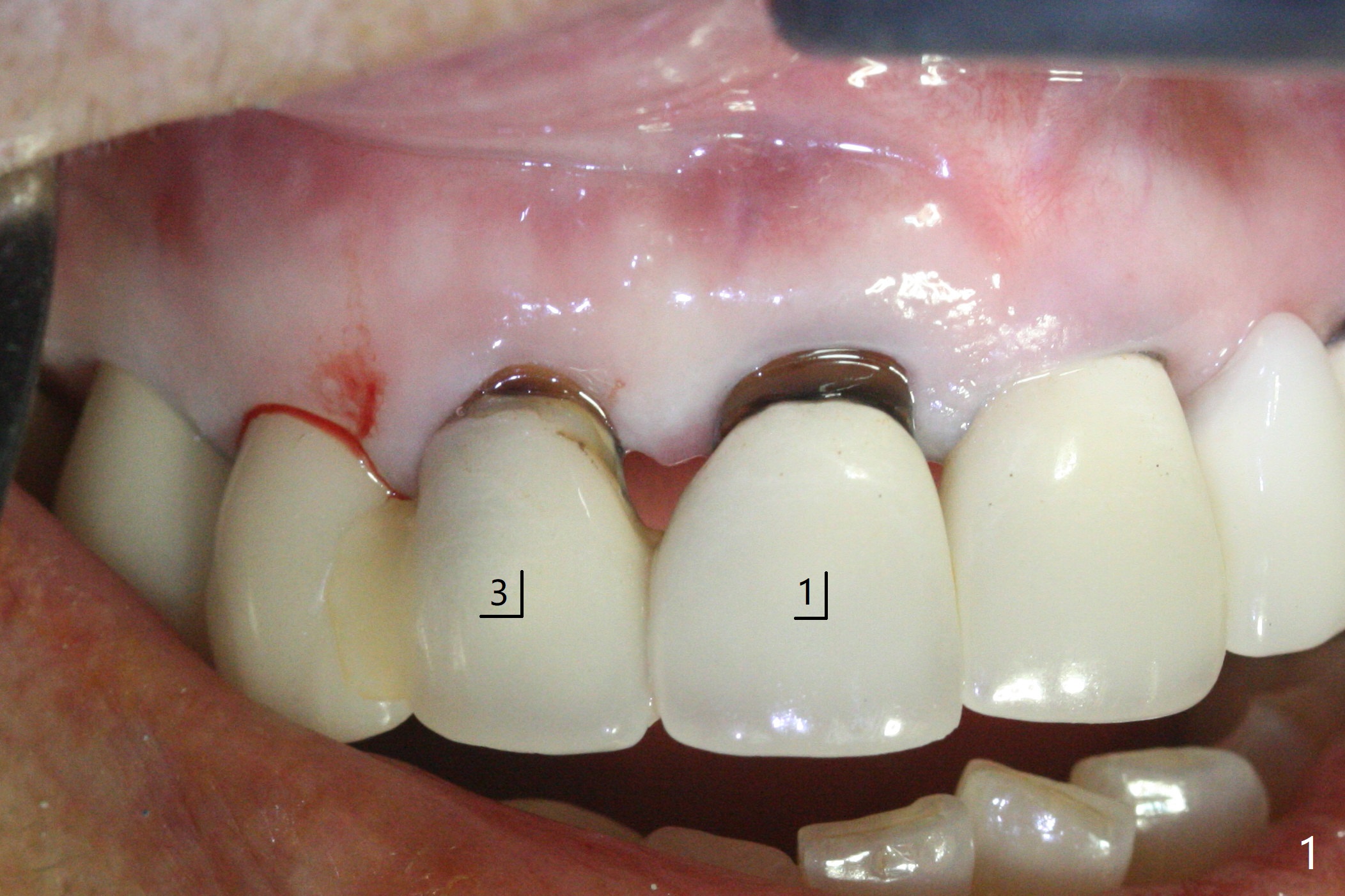 An immediate provisional (P) is fabricated to close the gingival embrasure as much as possible (Fig.5). Consider reducing the provisional margin (arrow) as early as possible postop. In fact the patient agrees to have a new crown made for #8 to further close the embrasure. She changes mind immediately before final restoration.