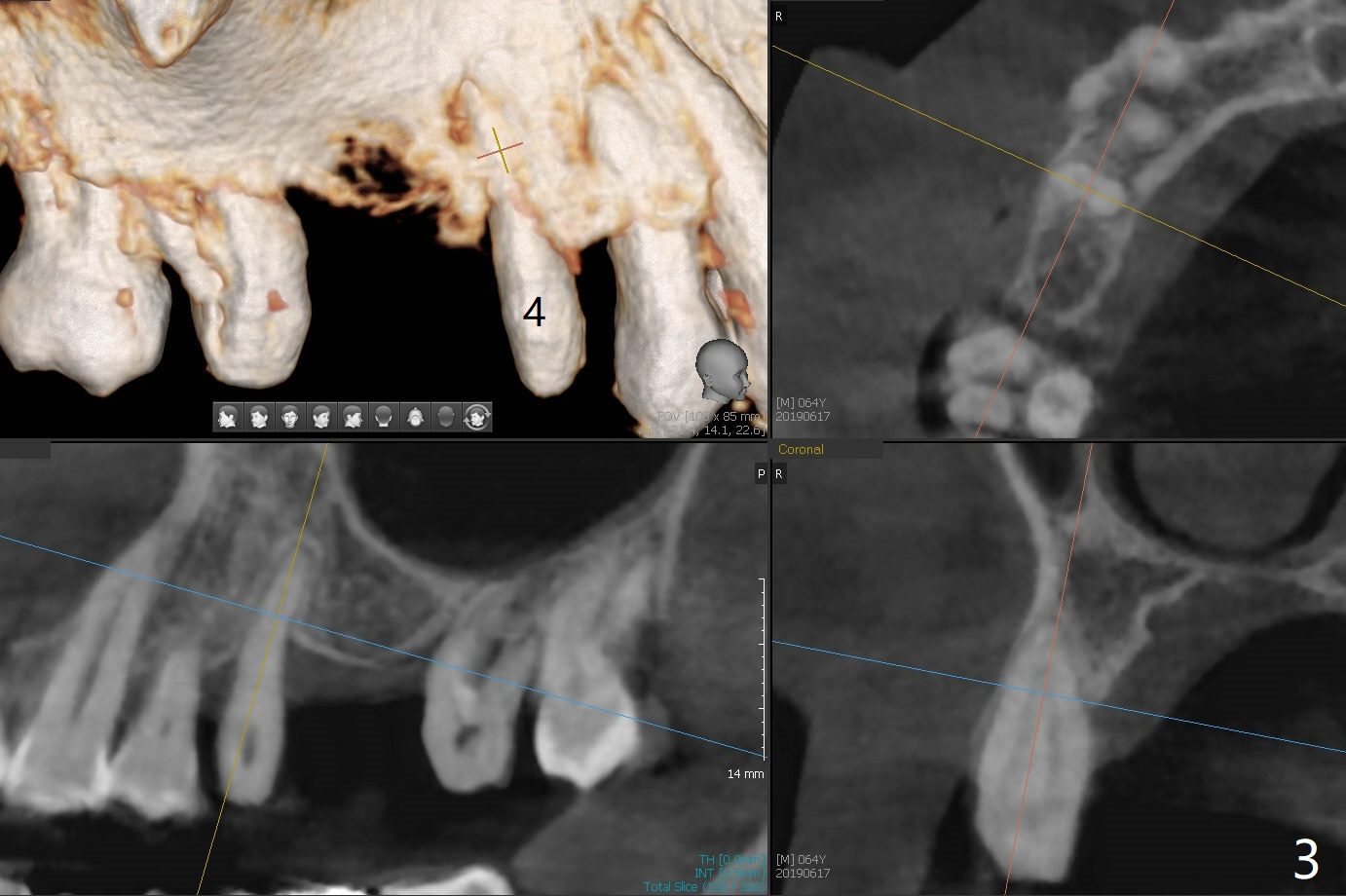 A 64-year-old man has a loose FPD at #2-4. After discussion, he agrees to have it removed for implant at #3 (Fig.1). In fact the bone loss at #2 is severe (Fig.2, as compared to #4 (Fig.3)). When the implant osteointegrates (Fig.4), make single unit crowns and let the patient decide whether the tooth #2 is salvageable or not.