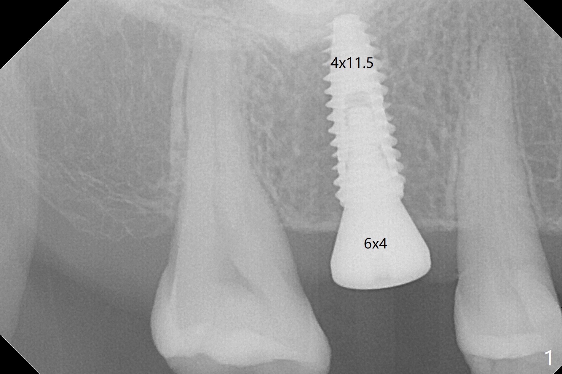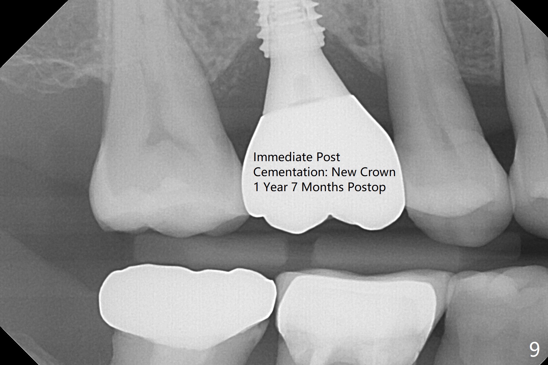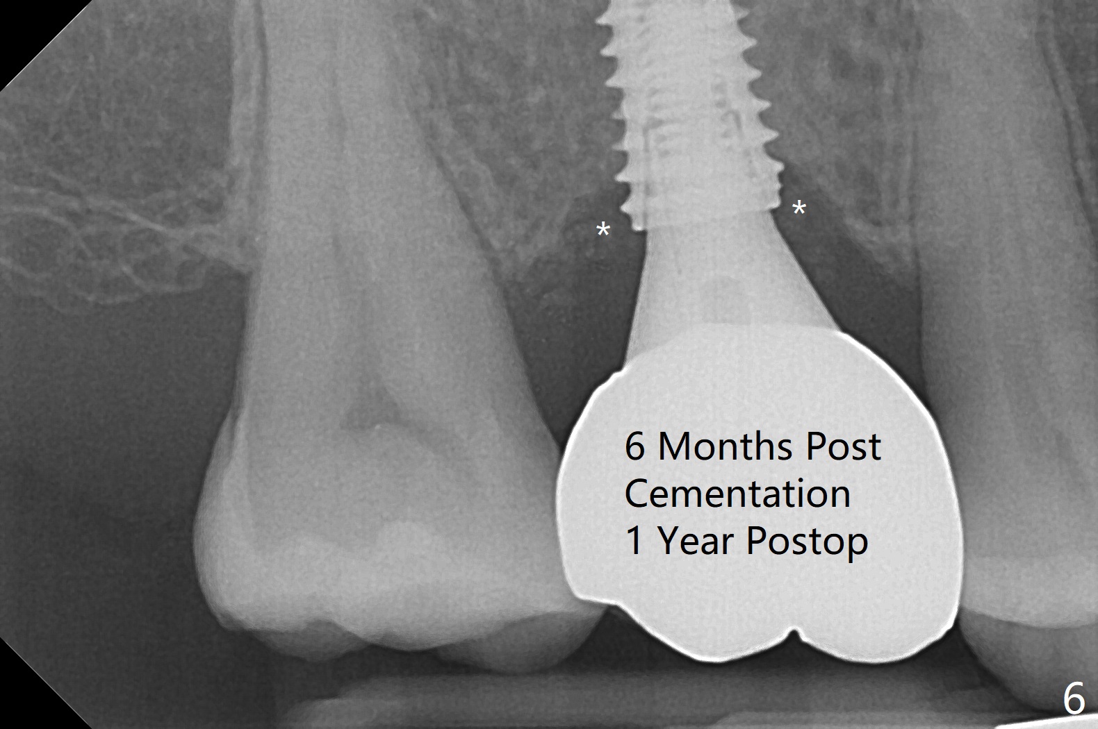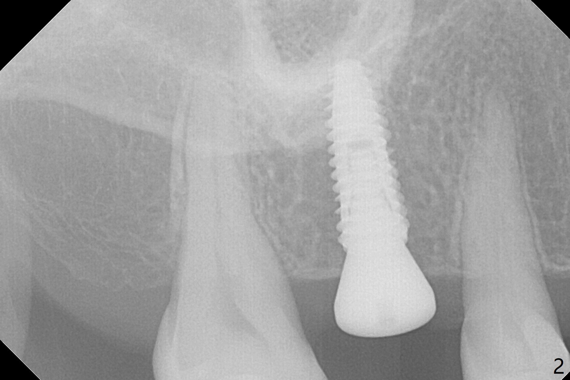 PA taken following reseating the repaired abutment/crown shows crestal bone