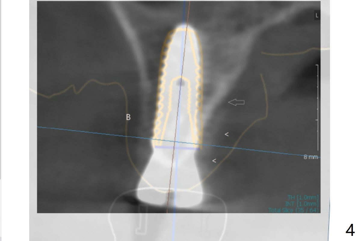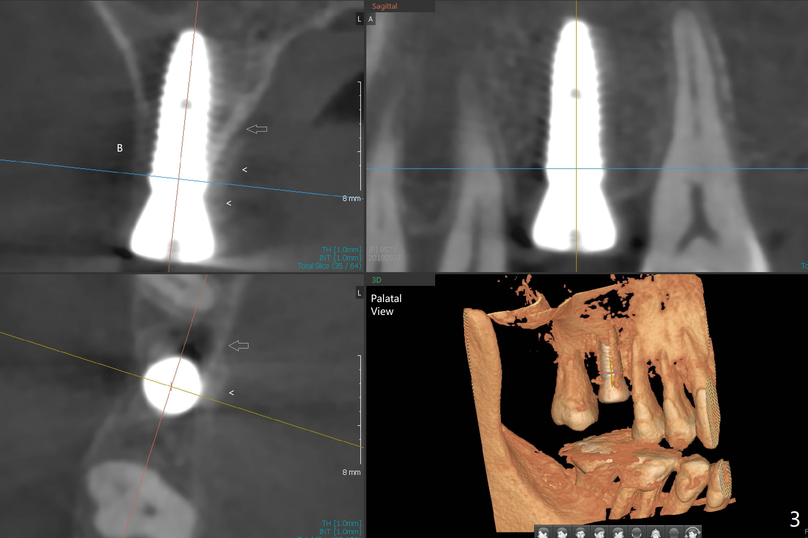 CBCT taken 10 days postop shows apparently the coronal end of the palatal plate