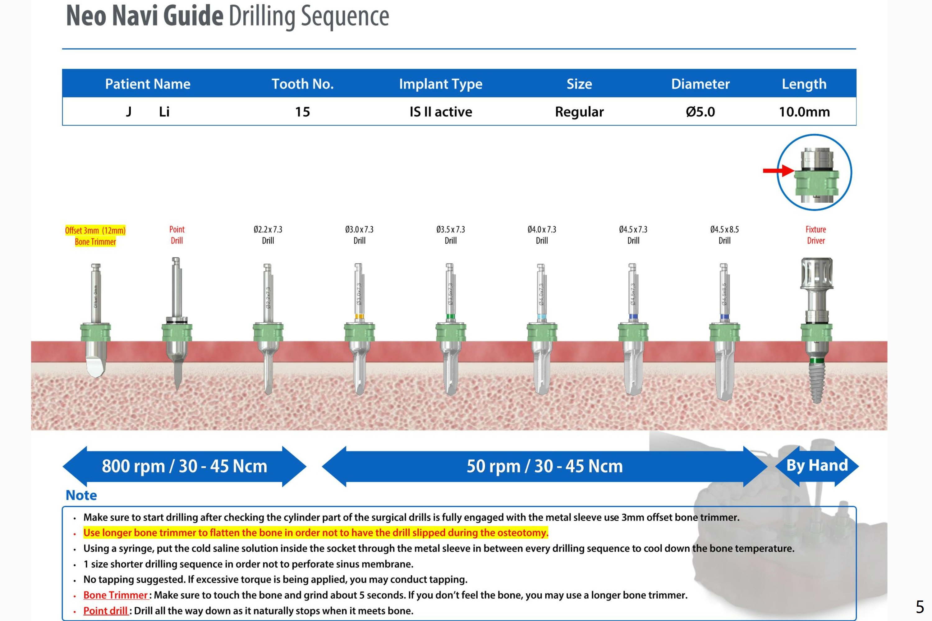 Prepare 2 tubes of PRF, one possible for sinus if the membrane happens to be perforated and the other to cover palatal bone graft. Also save autogenous bone.