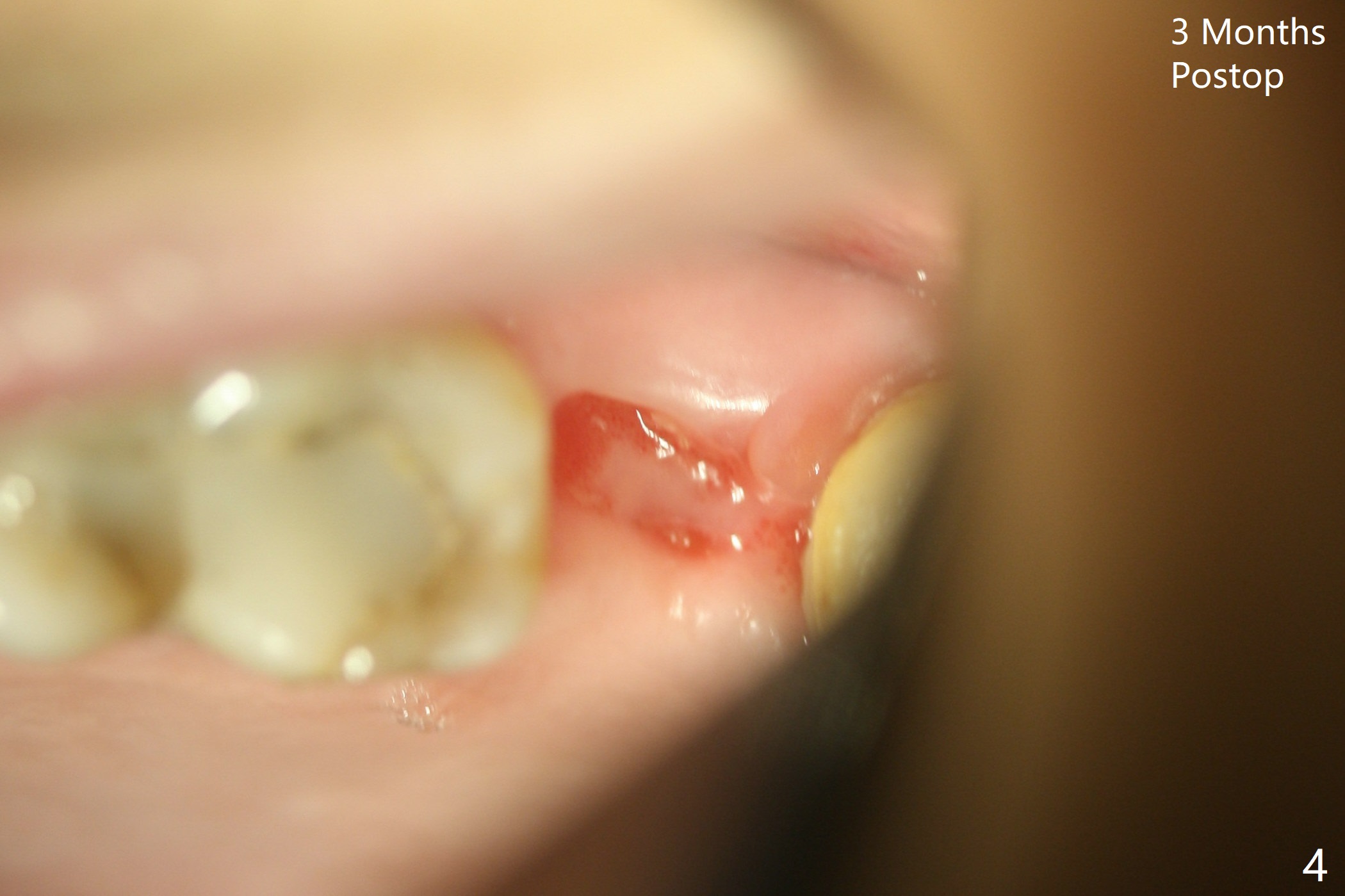 The healed socket appears to have been shrunken buccopalatally 3 months postop (Fig.4), probably due to the absence of an abutment and a provisional.