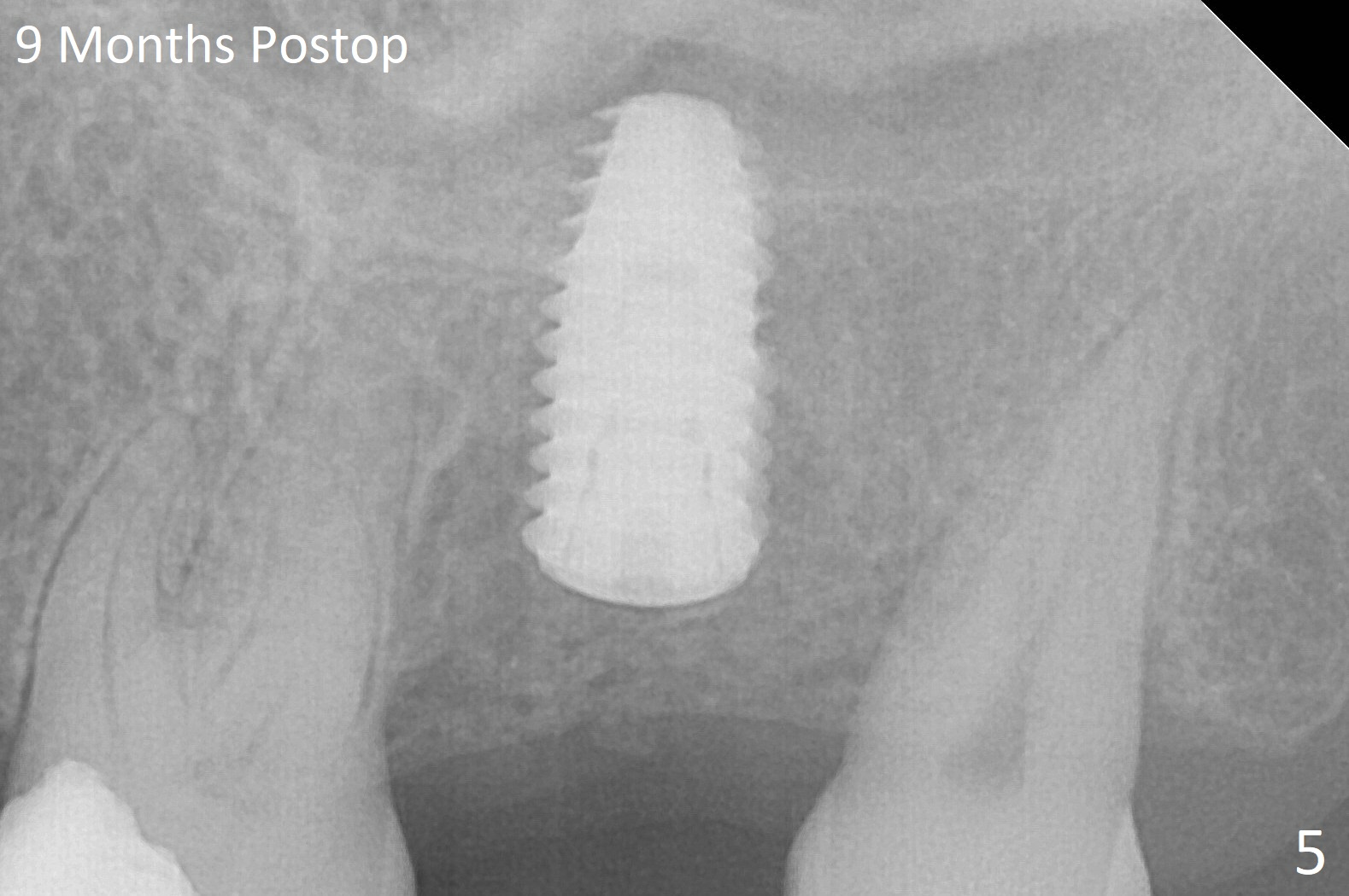 Bone forms overlying the implant plateau 9 months postop (Fig.5), which is confirmed in implant uncover.