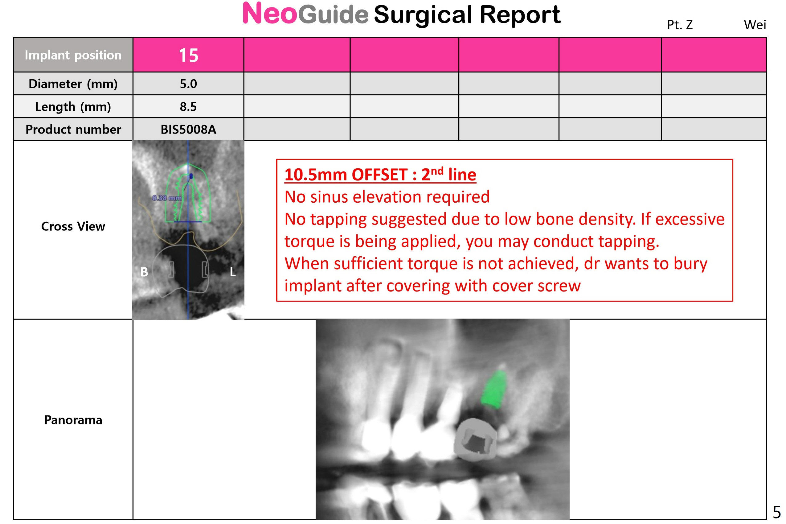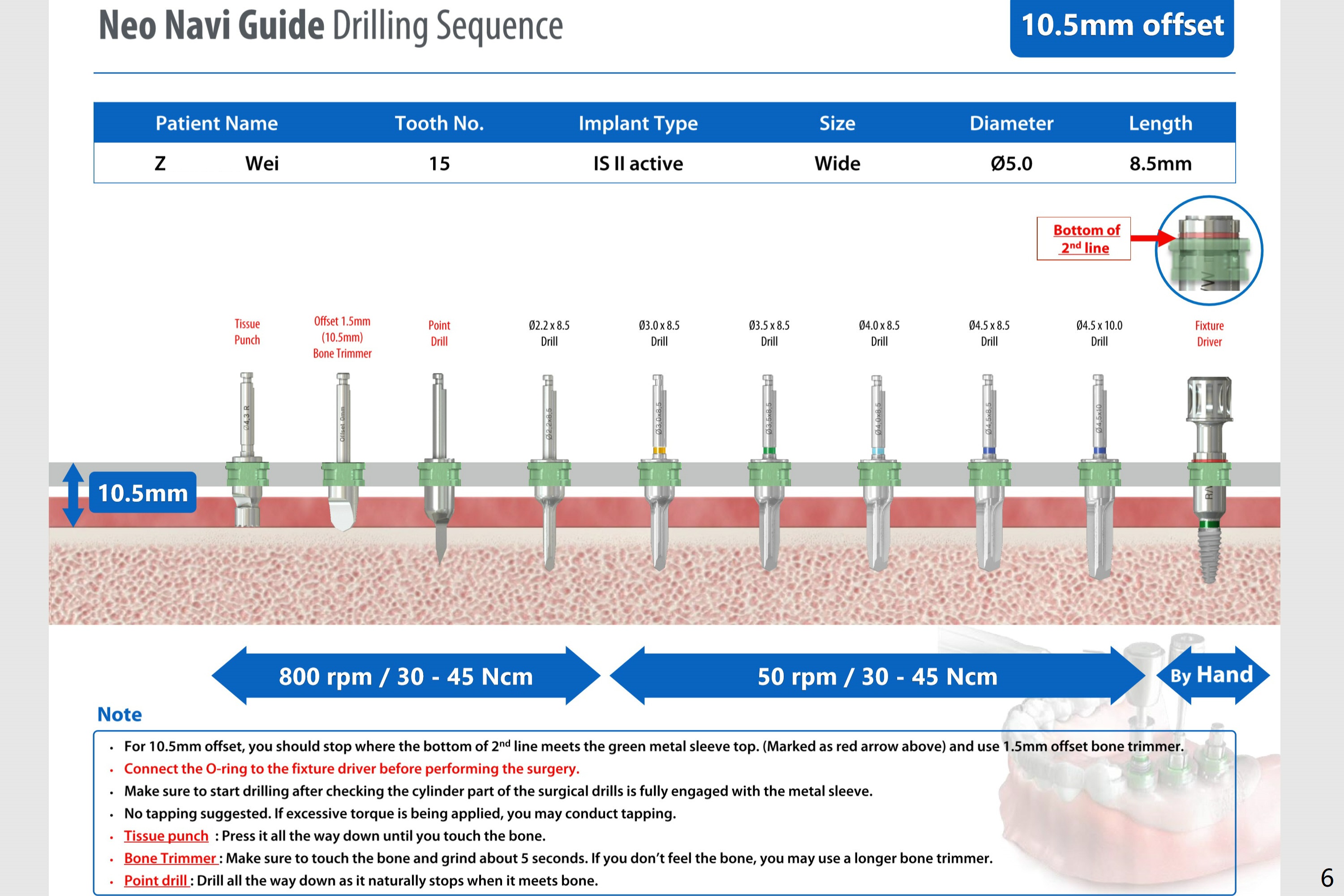 A 89-year-old man. After the last 2nd drill, use 2.2 mm drill to the depth to see whether sinus membrane is perforated or not. Then increase drill diameter.