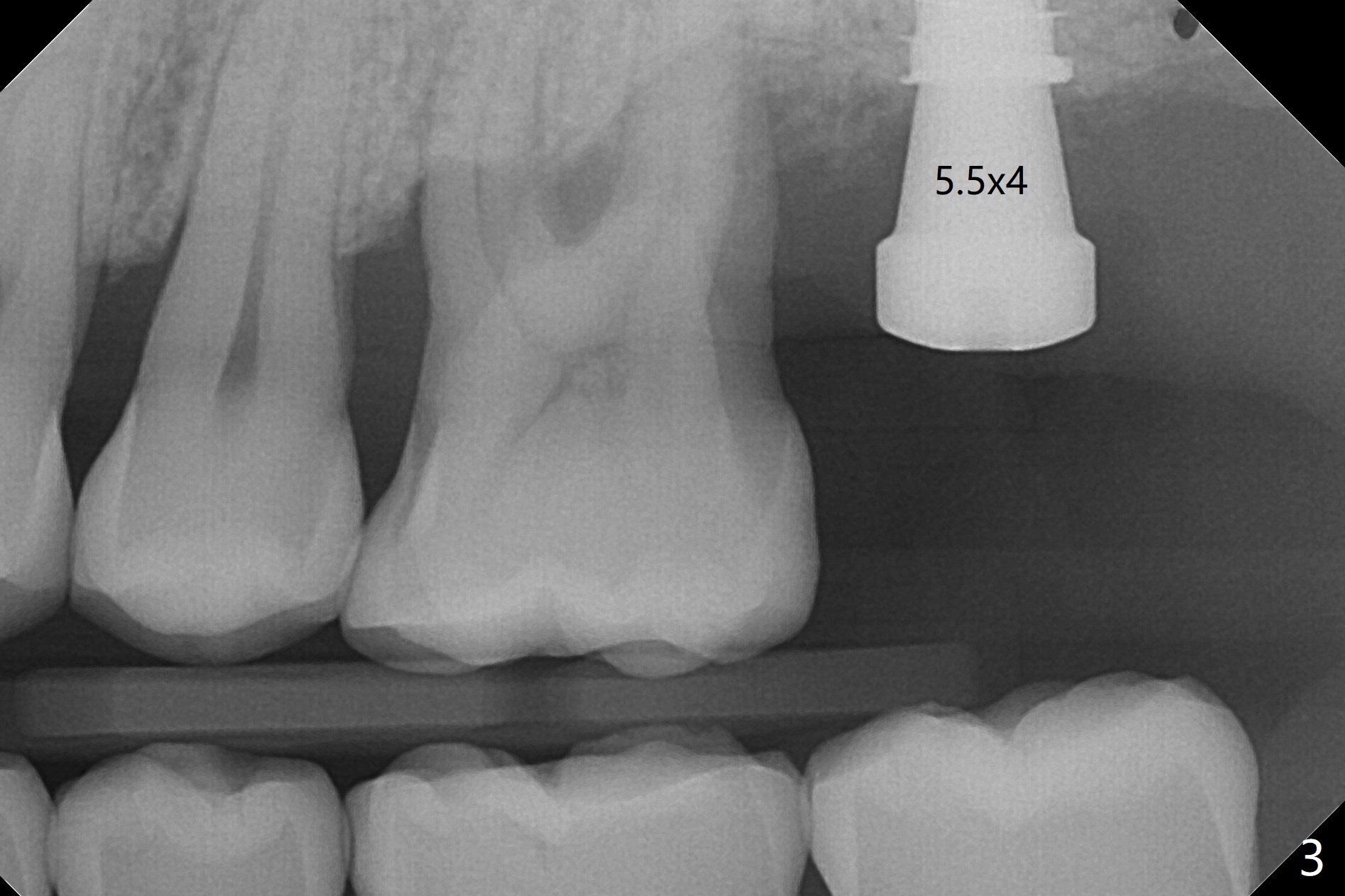 cartridge),植入短小植体(4.5x7毫米,原定(5x8.5毫米)图二),由于稳定性好,使用5.5毫米profile钻头后,放置5.5x4毫米愈合基台(图三)。术后病人没有什么上颌窦不适和分泌物。估计Novo