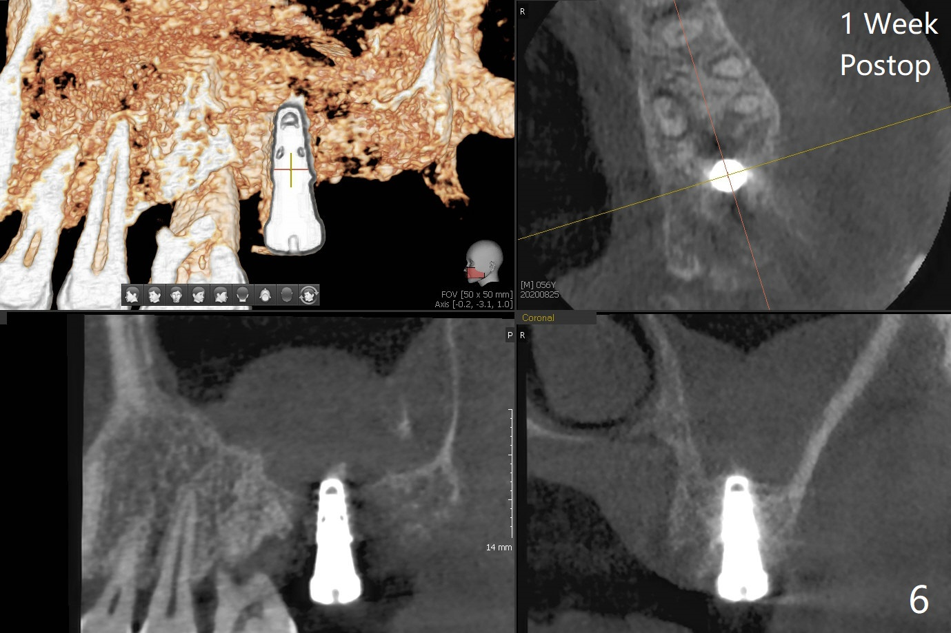 一个月后安置修复基台,开始progressive loading,临时牙冠没有咬合。