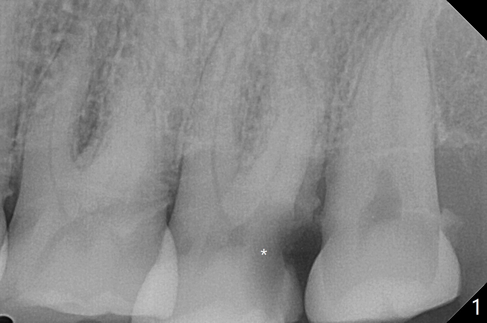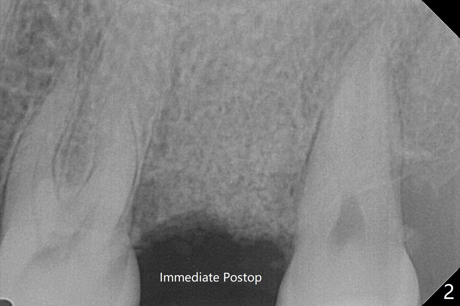 61岁女,胃病,不愿意保留左上7(图一),其实拔牙困难,牙齿小,牙钳显得大,无法旋转,摇把,最后不得不切断,分根拔除,没有肉芽组织或者骨板缺损。由于星期六病人多,使用GEM21S(~.25cc)与皮质骨(图二),Teflon,牙周胶水,牙周敷料固定骨粉。