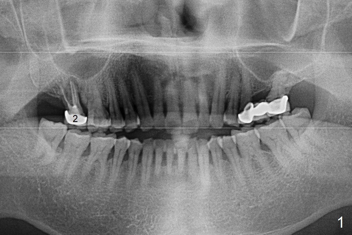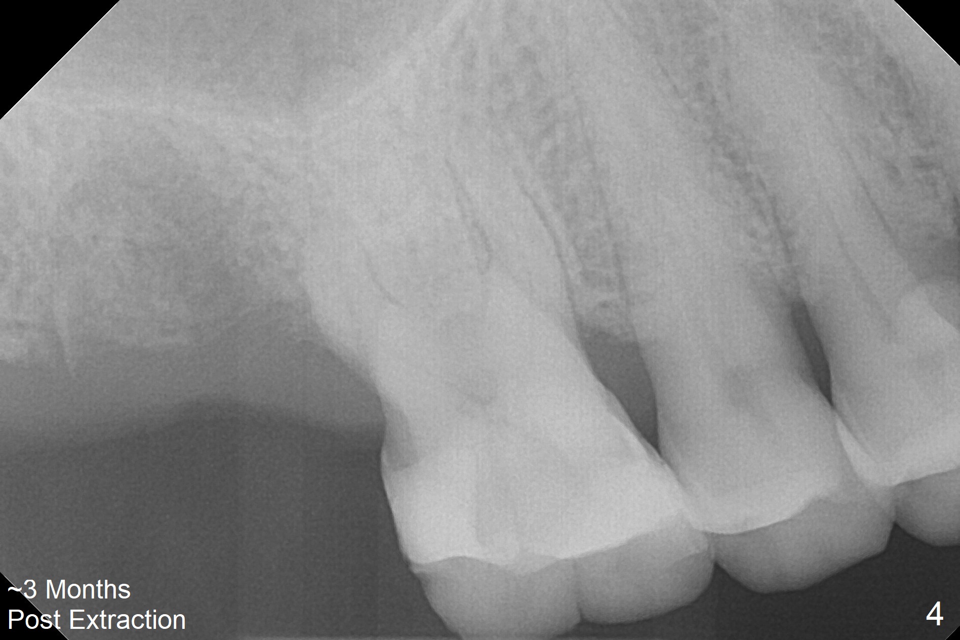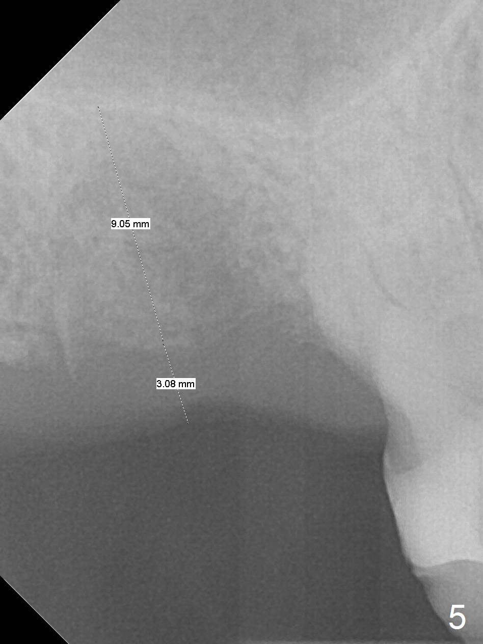 A 65-year-old man returned to finish LR and LL quadrant SRP a few weeks post SRP for UR quadrant and #2 extraction (Fig.1-2). He returns for UL SRP tomorrow ~ 3 months post extraction (Fig.4). Although the patient cannot remember whether socket preservation is done or not, there appears to be bone graft in the socket. The ridge is wide. It seems reasonable to expand and condense the socket using Magic Split and Expanders (flapless). If the patient cannot tolerate tapping, use DIO Bone Expanders. A 6.5x9 (3) mm Magicore will be placed (Fig.5,6).
