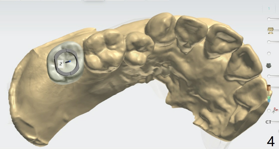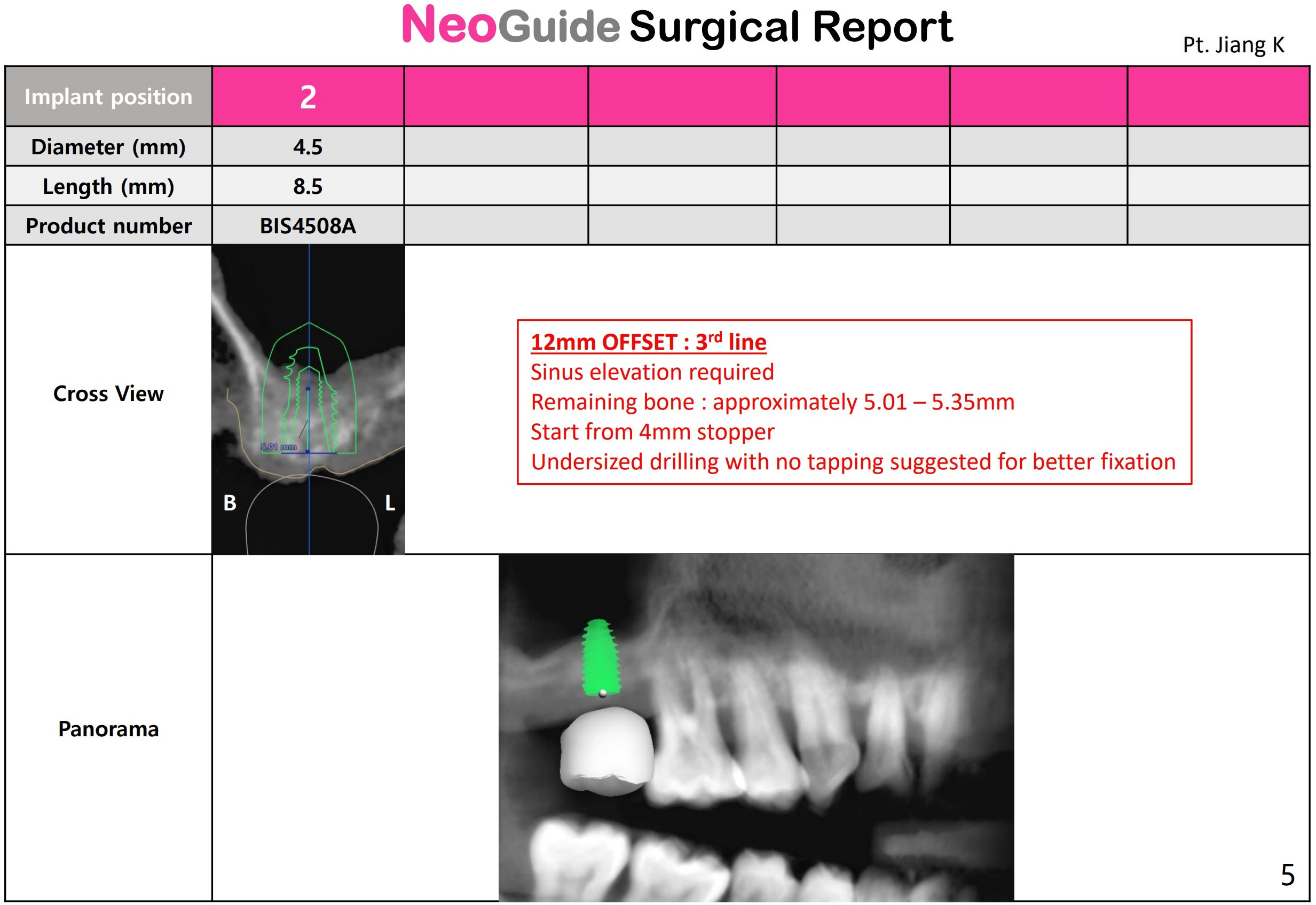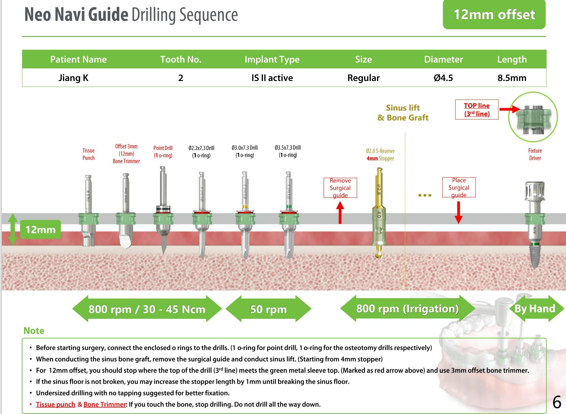 Nearly 5 months post socket preservation. Prepare 4 mm Biopsy Punch. After light use of Tissue Punch to make mark in the gingiva, remove the guide, use the 4 mm Biopsy Punch to harvest the tissue and place the latter in PRF dappen dish. If implant torque is low, place bone graft over the implant, return the tissue to the site and use perio glue for fixation. Finally apply acrylic dressing. Prepare Sinus Approach Kit and 4x10 mm IS dummy implant.