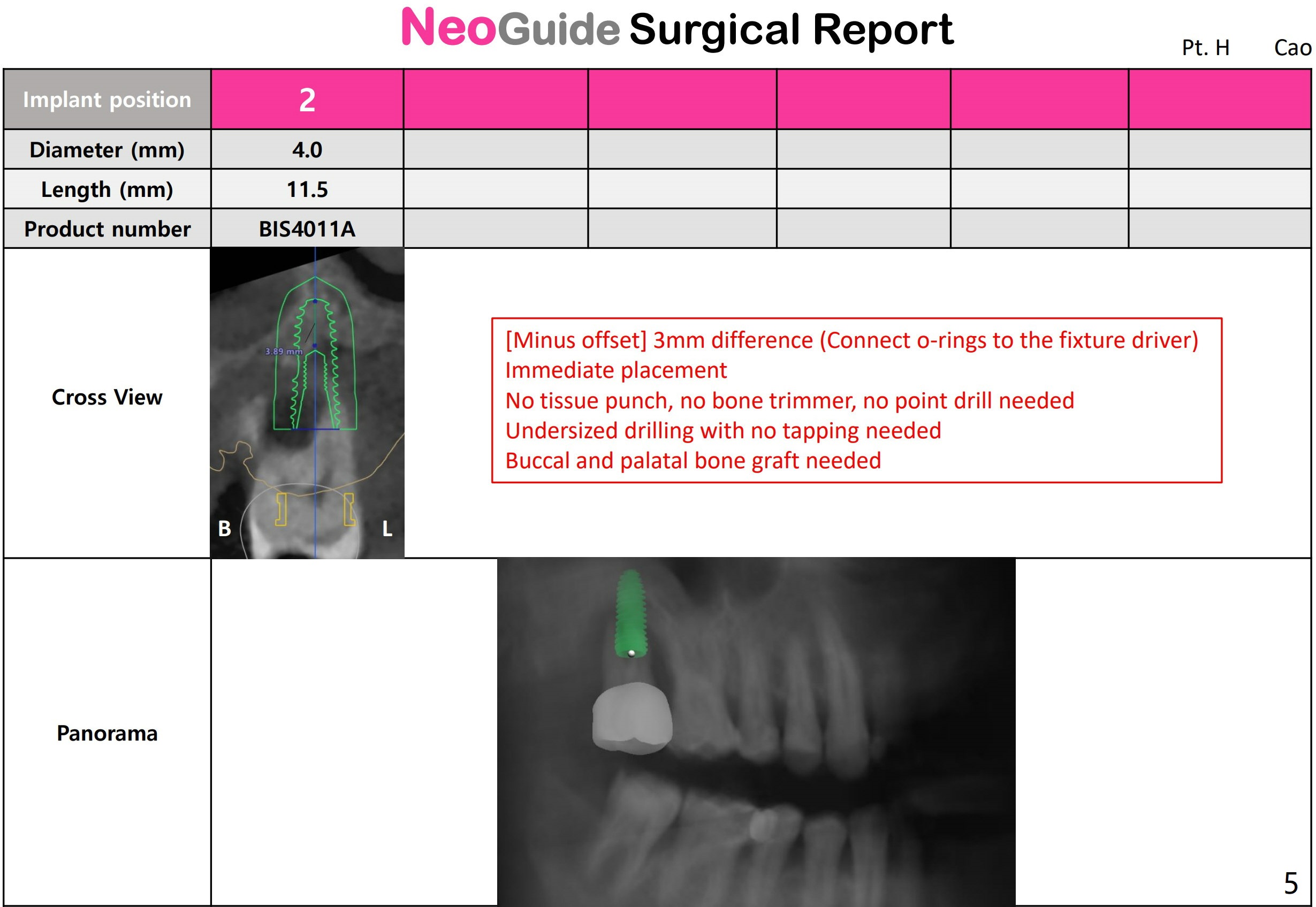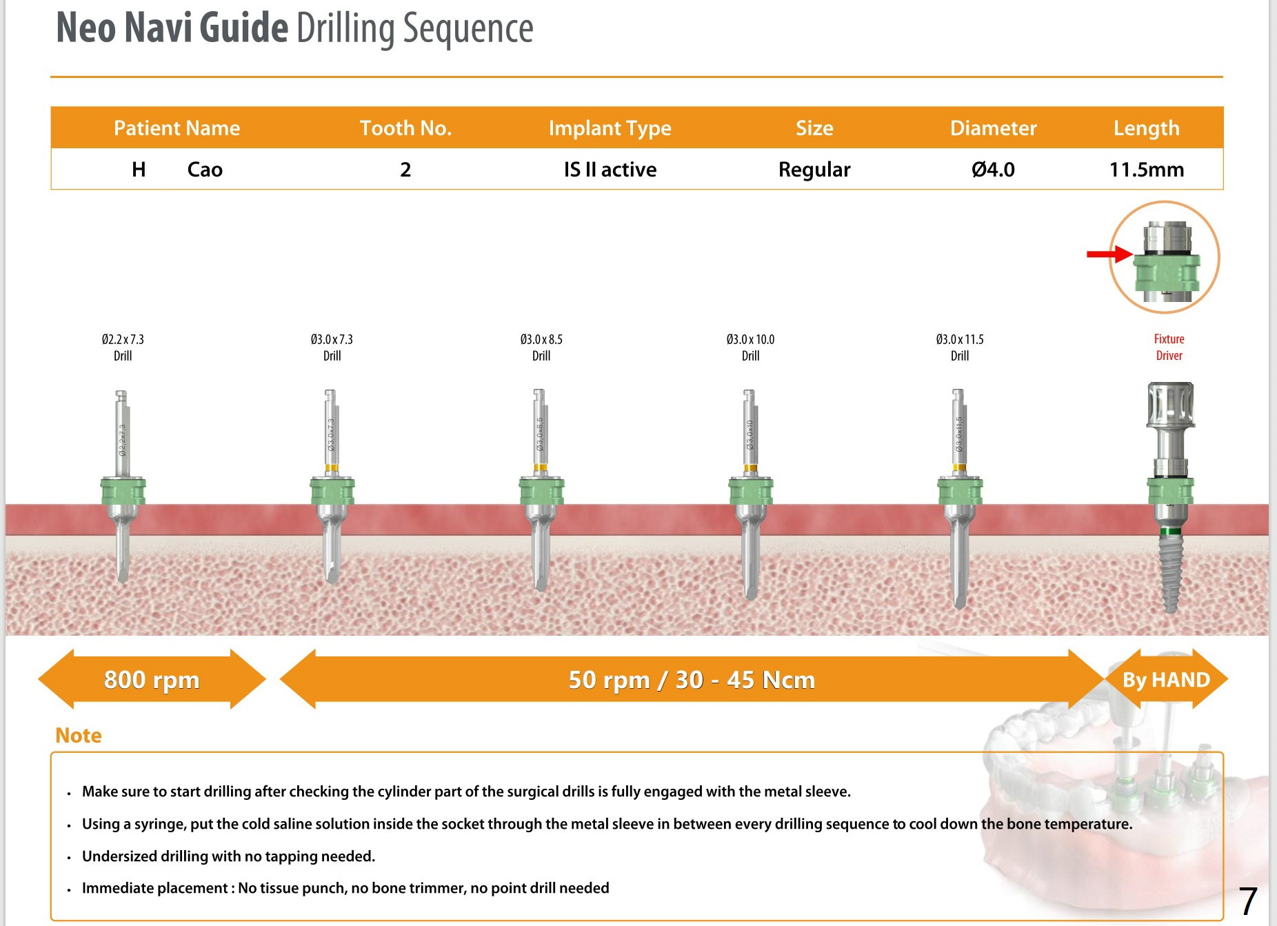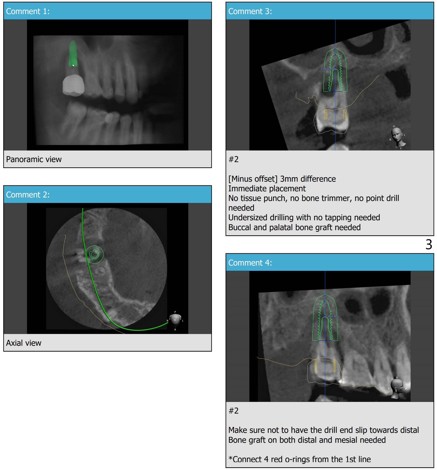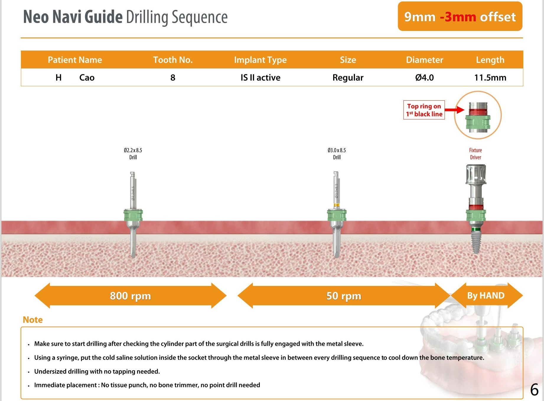 # 2 Offset : 9mm (-3mm offset) : While I was reviewing the data, I noticed that you can use 8.5mm length drill instead of adding extra o-rings. But still you have to add 4 red o-rings to the fixture driver for implant placement. Bloodx2. Rubber dam punch. IBS (Titanium V) if possible.