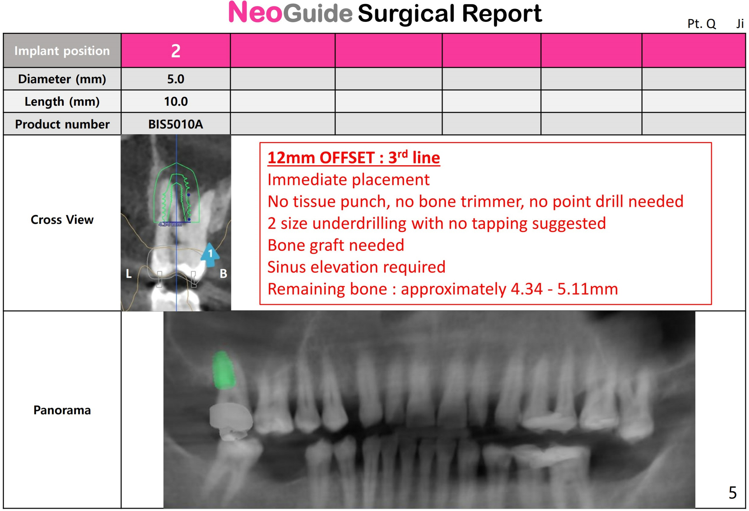 Implant length changes to 10 mm. Place 5x9 mm IBS one. Use 4 and 4.5x10 mm IS dummy ones for sinus lift. Sinus Approach Kit and Treatment Planning one.
