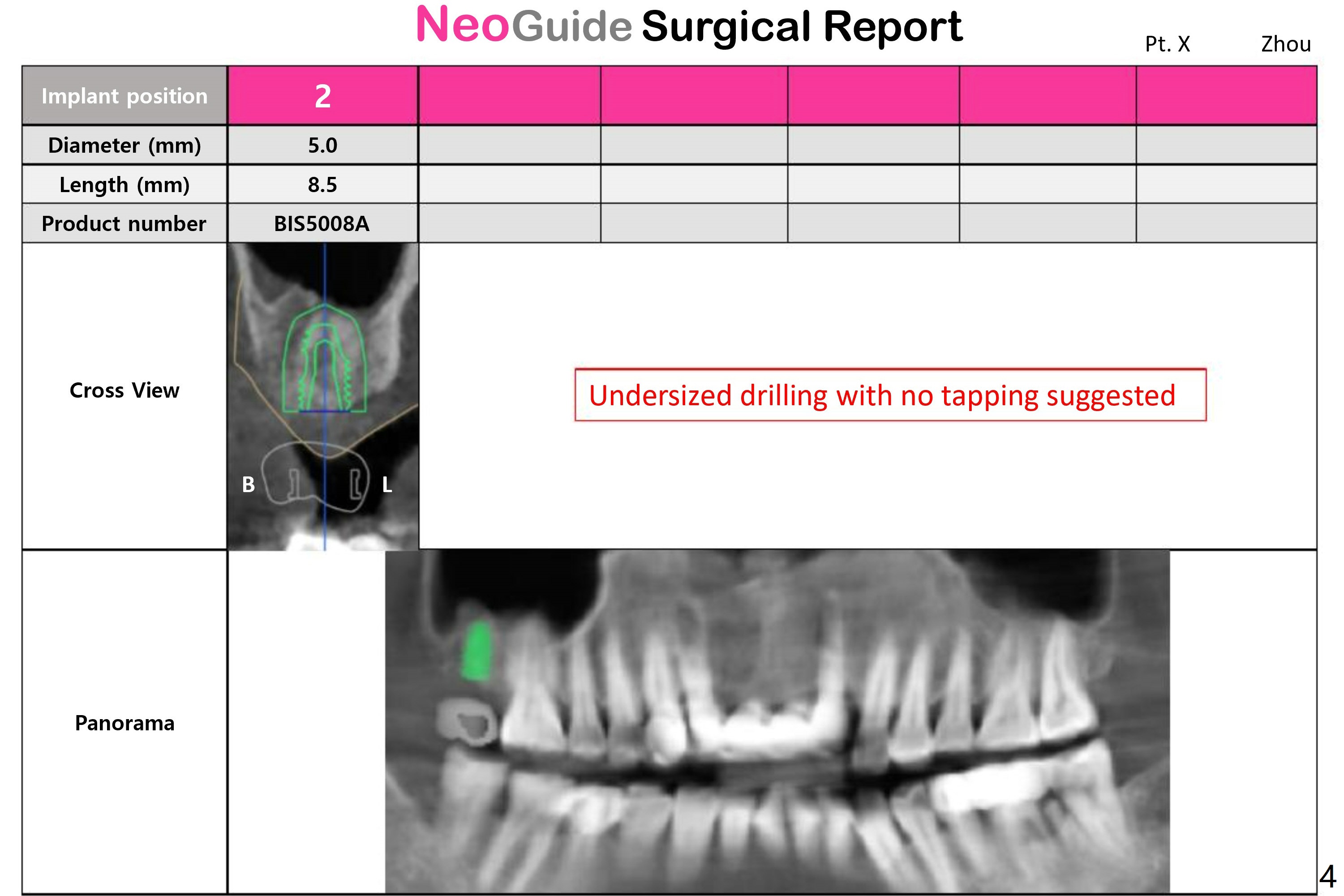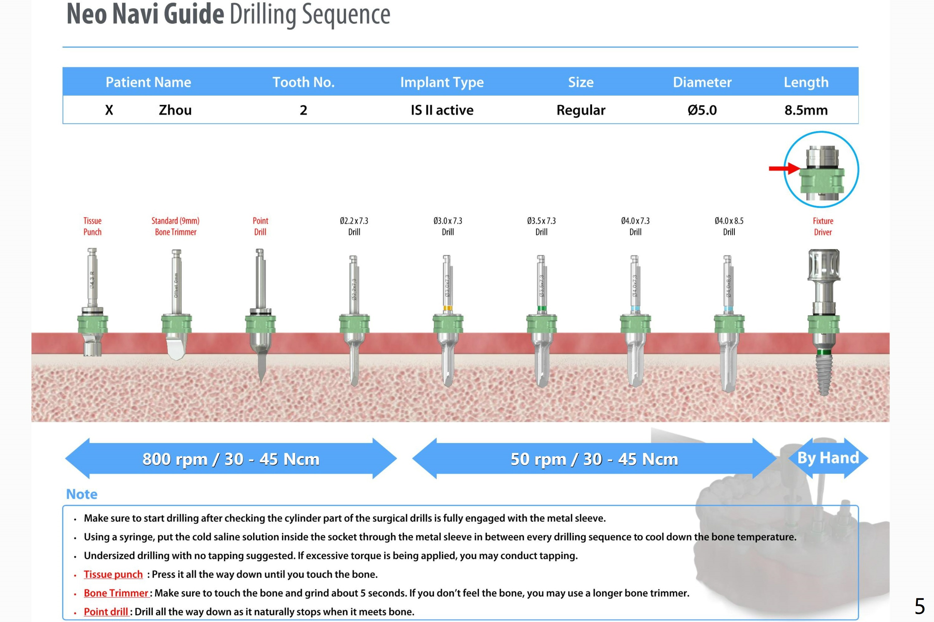 Four months post #2 implant removal (without sinus floor) and bone graft, a 5x8.5 mm implant will be placed without sinus lift.