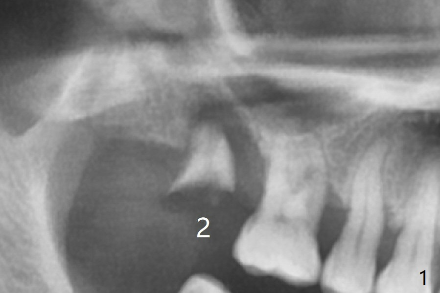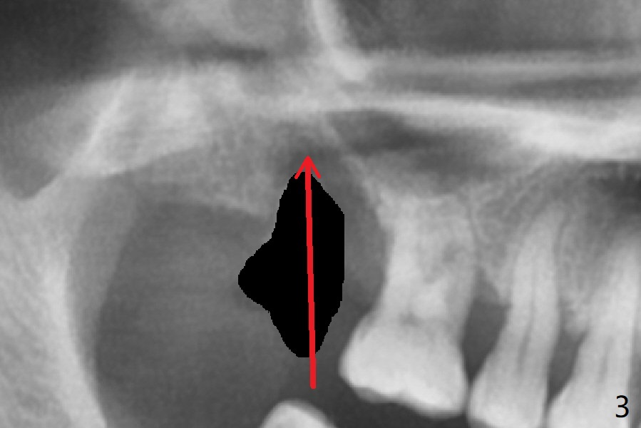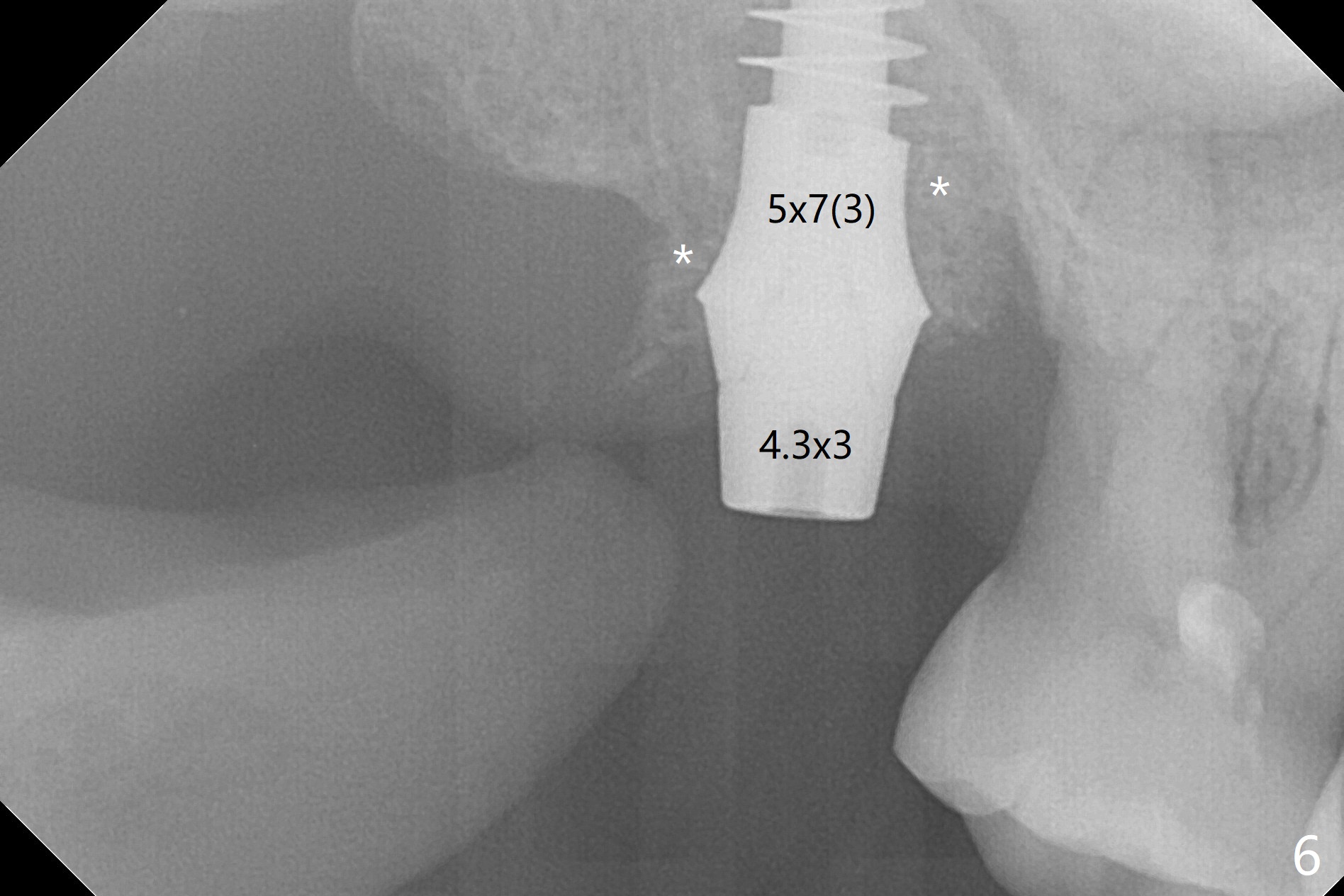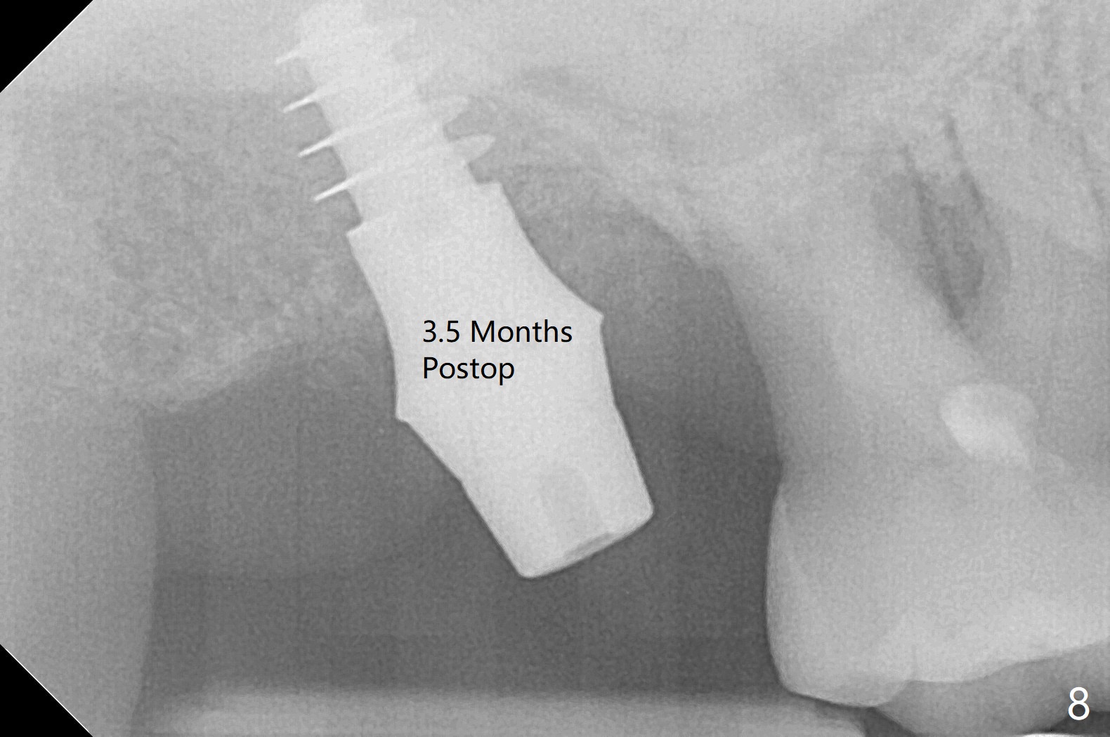 After extraction of the tooth #2 (Fig.1), osteotomy is supposed to be initiated in the mesial slope (Fig.2 arrow). With Magic Expanders (3-4.8 mm), osteotomy ends up in the bottom of the socket (Fig.3). Trajectory is found to be off when 4x9 and 5x9 mm dummy FC implants are placed with stability (Fig.4,5). The final implant, Magicore (5x7(3)mm, >29 Ncm), appears to be placed too deep for restoration (Fig.6,7); a screw retained crown may be a solution. PRF membrane and Vanilla (allograft) are used for sinus lift (no sinus membrane perforation). Following Vanilla graft in the socket gap (Fig.6 *), another piece of PRF membrane is used to cover socket opening. The membrane is fixed in place with suture and periodontal dressing. The implant seems to have osteointegrated 3.5 months postop (Fig.8). After change to 4.3x5 mm solid abutment and mesial surface adjustment, impression is taken for early loading because of removal of #14 implant. In fact the patient is satisfied with mastication improvement at #2 later on.