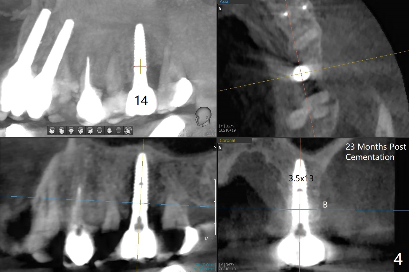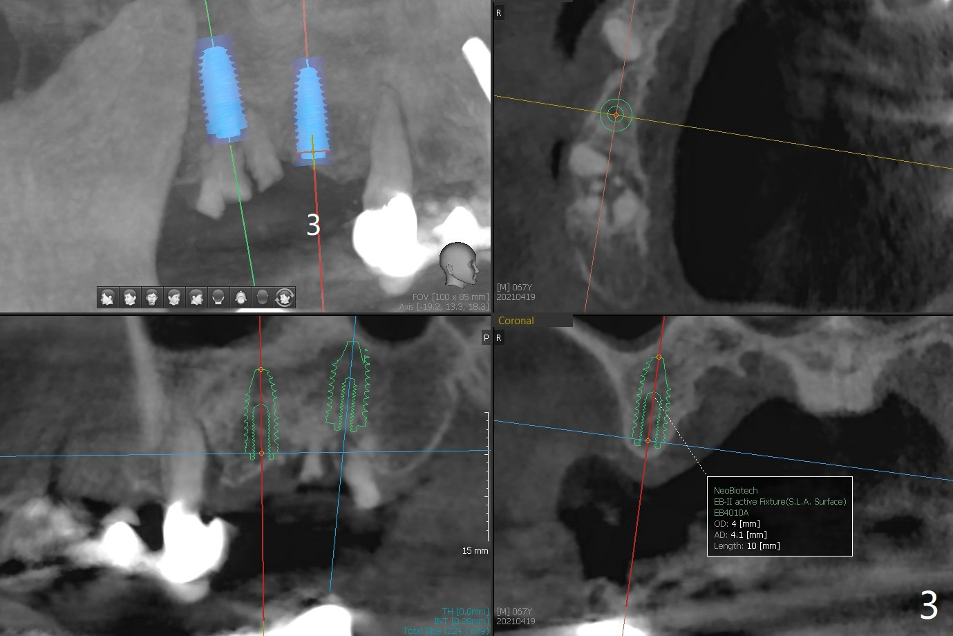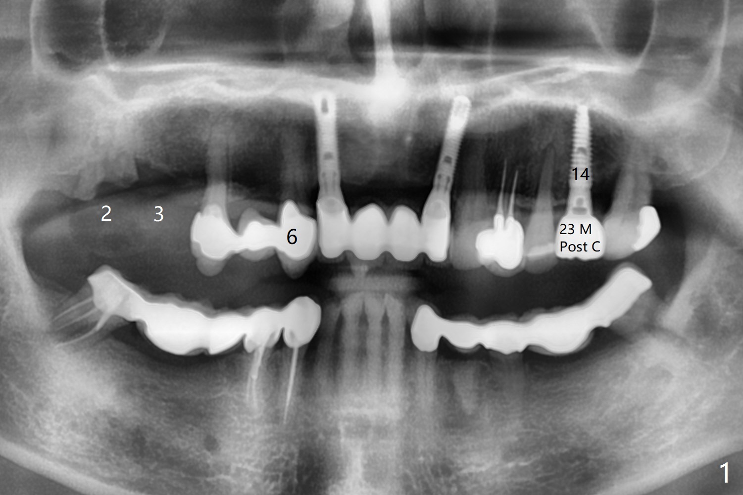 67岁男14号牙植牙牙冠粘固后两年回来处理右上(2-6)桥问题,撤除2,3单位(图一),准备种植(图二,三),3号牙牙槽嵴比较窄(图三),勉强植入4x10毫米植体,我想借助导板和它的钻头进行骨扩张,这样可以植入稍微大植体,例如4.5毫米。能不能最细钻头顺转,而再粗的钻头倒旋达到扩张目的?3号牙牙槽骨平均密度650单位。