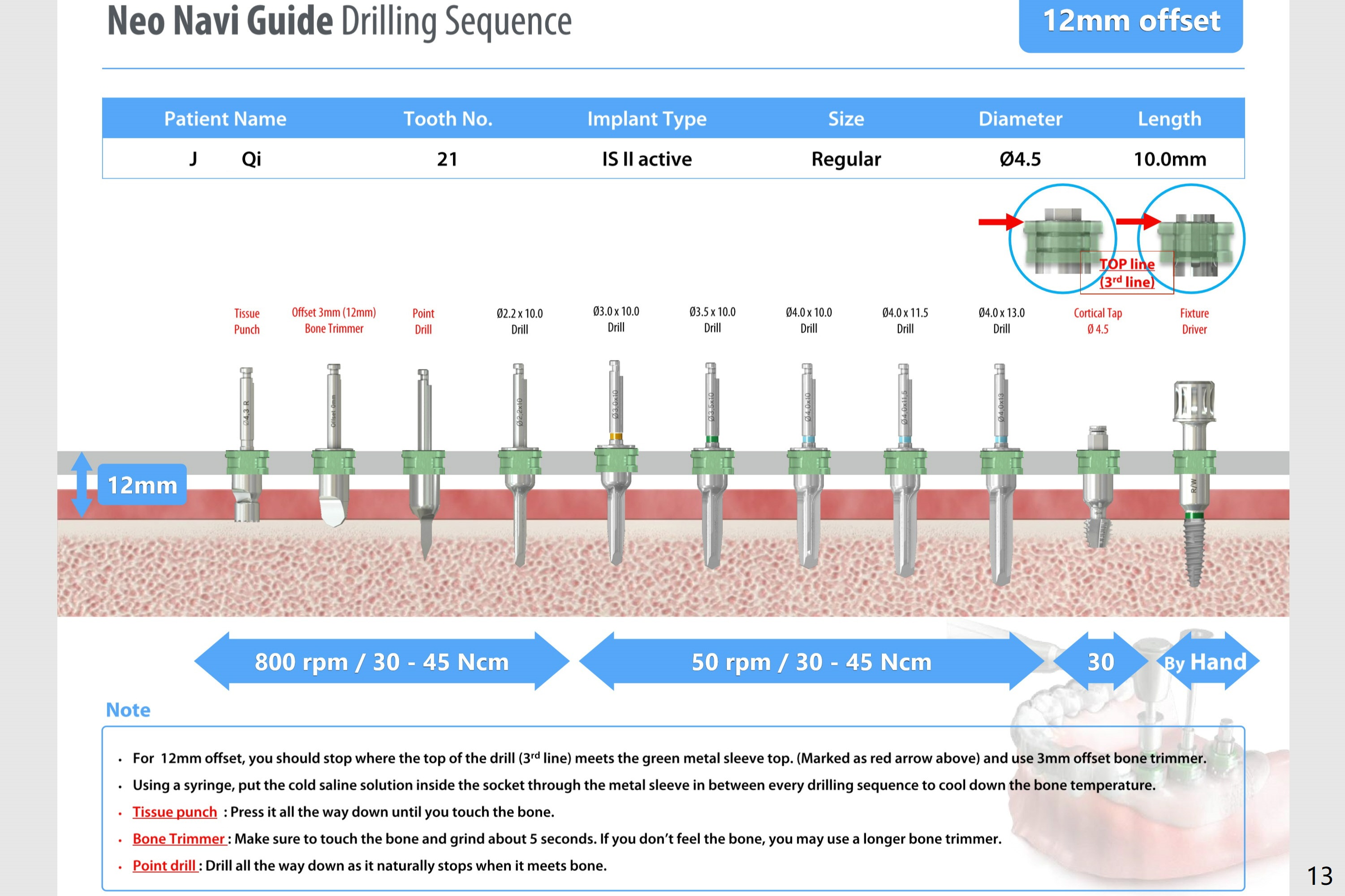 A 60-year-old man needs implants at #12, 14 and 21. The ridge at #14 is narrow. The implant could be placed a little deeper than designed (5 mm subgingival).