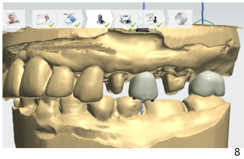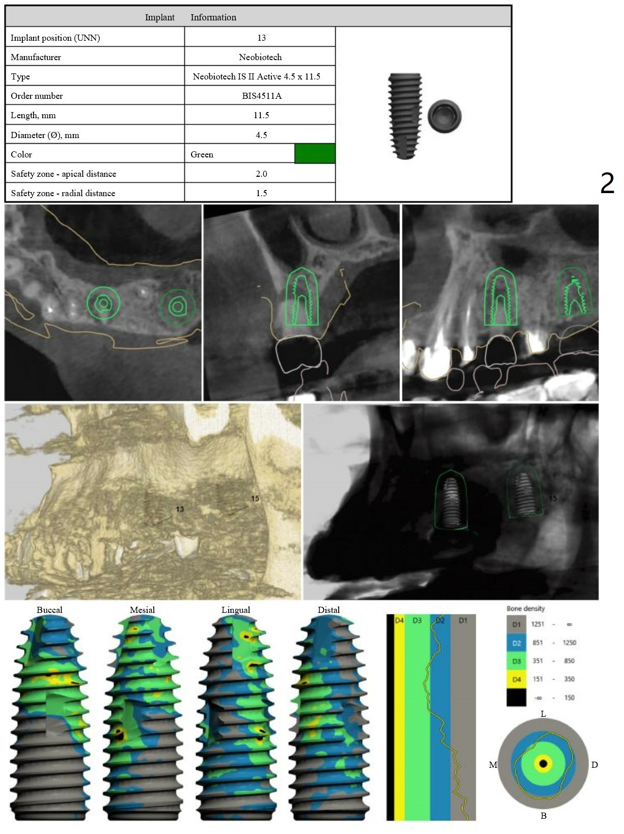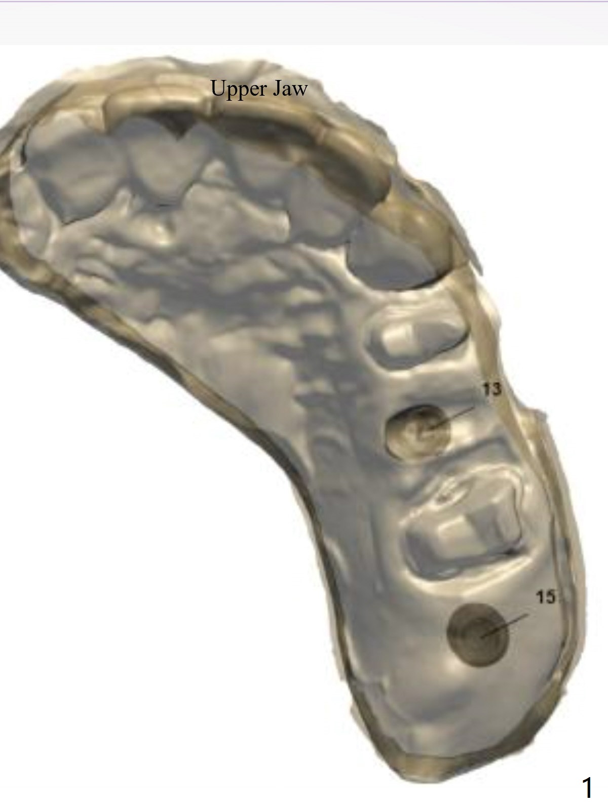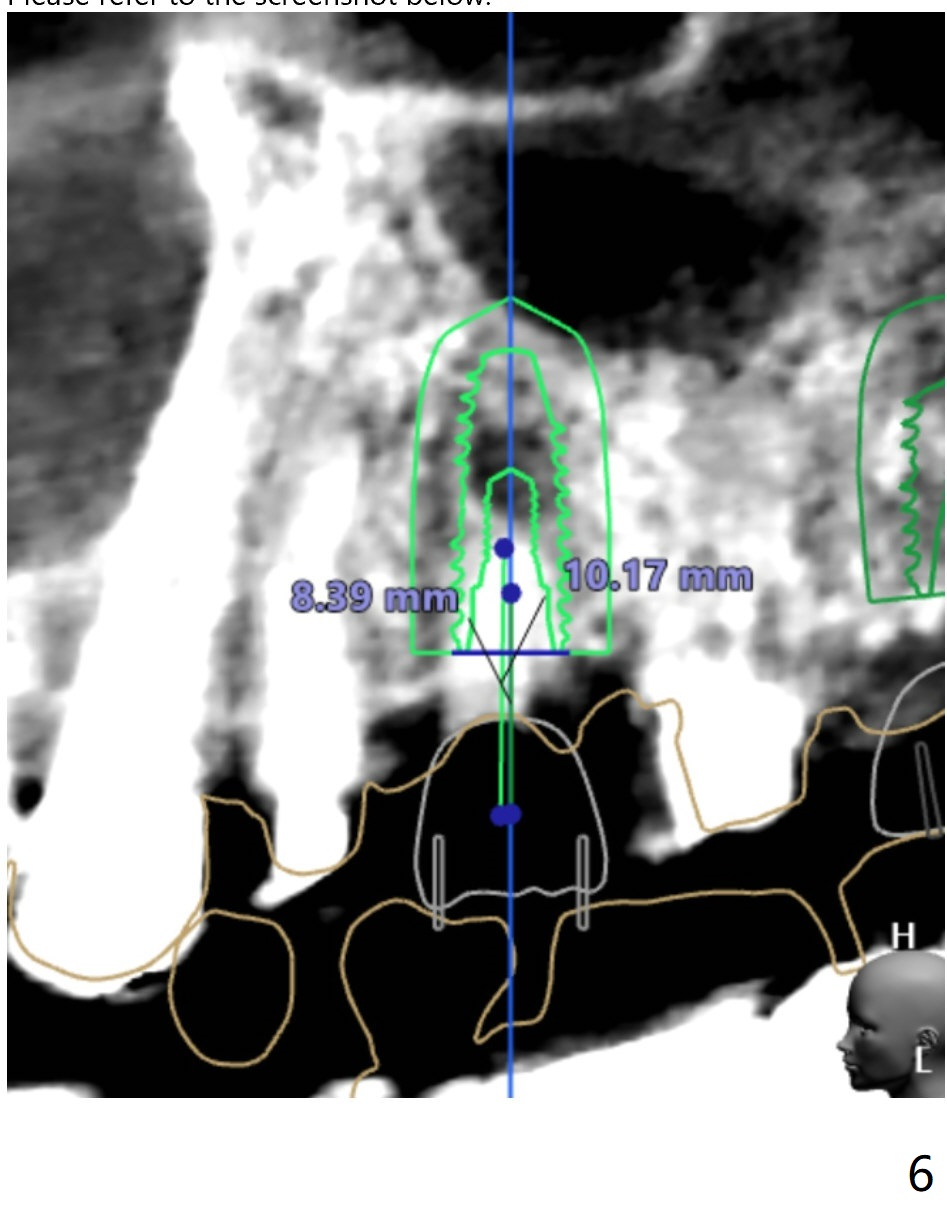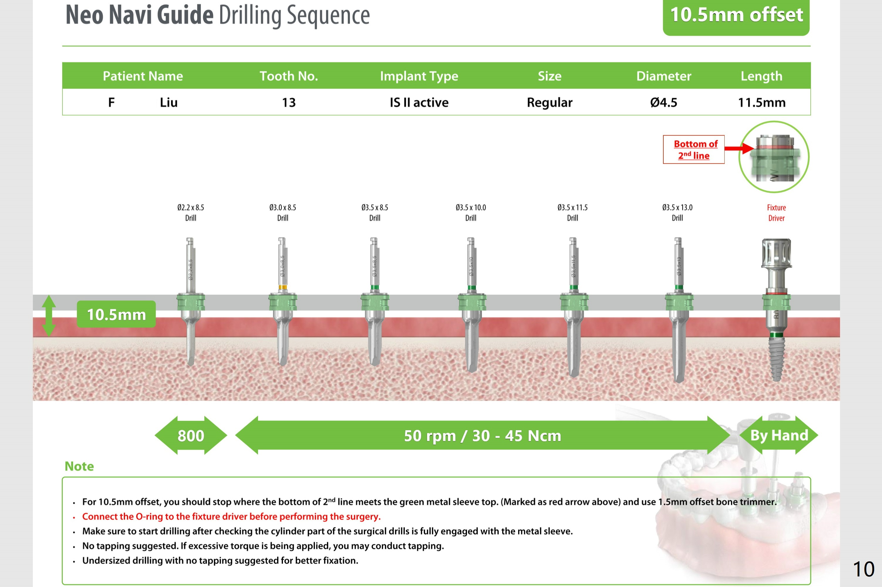 To avoid drills or implants (particularly immediate one) touching the neighboring root, 2.2 mm drill will reach the depth (sequentially) first and take segmental panoramic X-ray. Prepare sticky bone to increase primary stability by inserting it into the space of the socket at #13 mesiobuccally.