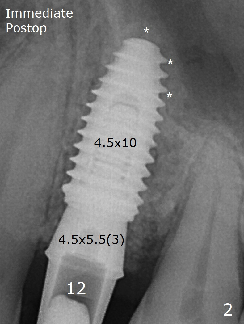 After removal and cleaning, the abutments are reseated and retorqued to 30 Ncm 11 months postop (Fig.4).