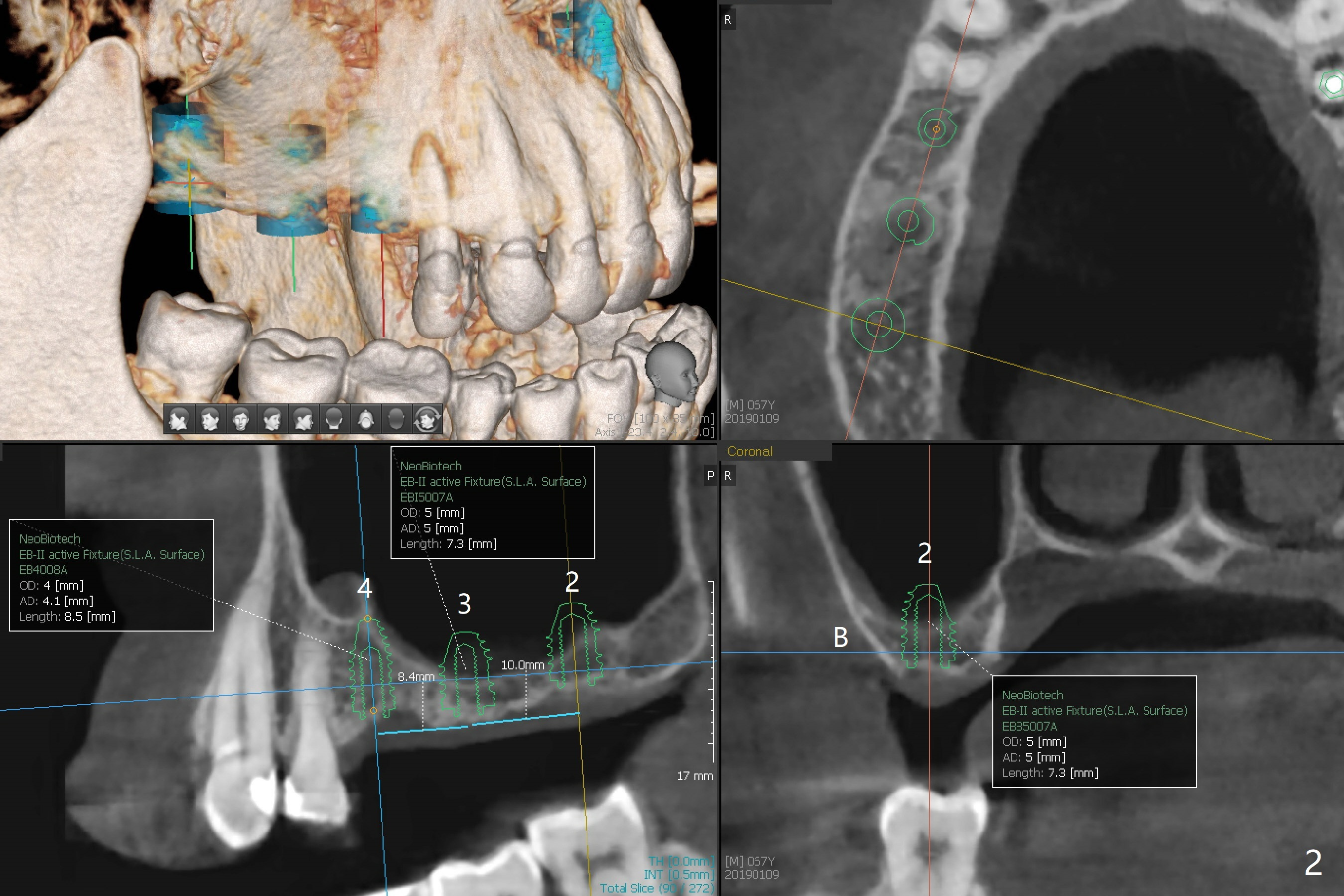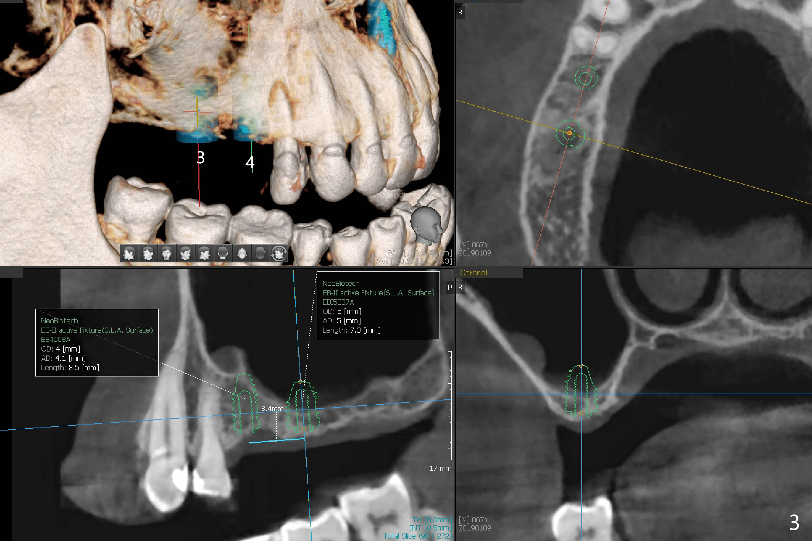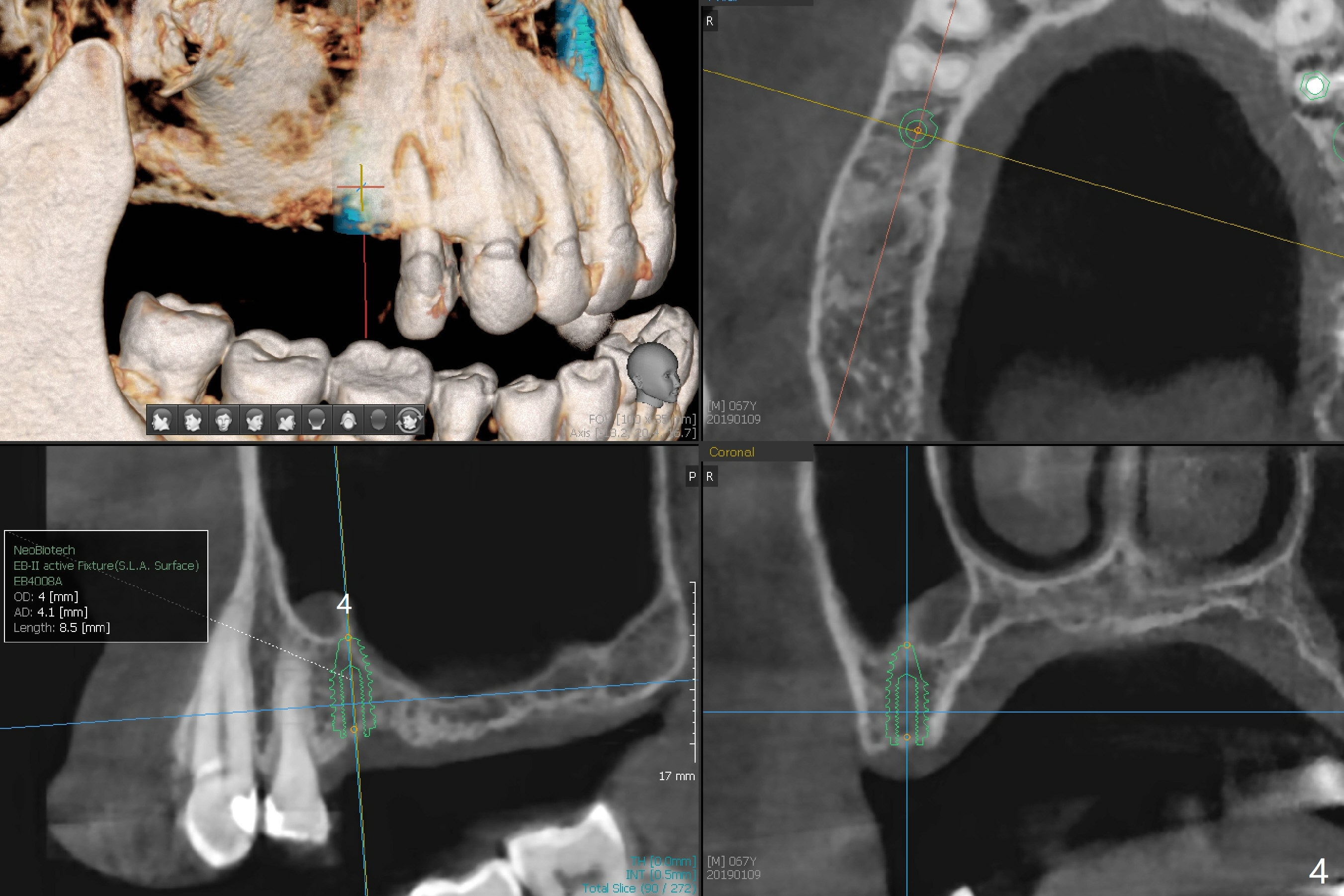 A 63-year-old woman wants to change upper RPD (for #2-4, 13 and 14) to implants because of denture-associated candidiasis. She is afraid of osteoporosis, although the implant at #18 is doing fine almost 3 months post cementation (Fig.1). One way to restore the upper right quadrant is to place 3 short implants (7.3 or 8.5 mm) with guide with simultaneous internal or external sinus lift (Fig.2-4). The tooth #12 appears to have root fracture with periradicular radiolucency (Fig.5); an immediate implant will be placed. While a short implant will be placed at #13, no implant will be placed at #14 because of 1 mm bone (Fig.6). A cantilever FPD will be fabricated in the upper left quadrant. The thick left sinus membrane is a problem as related to a lift?