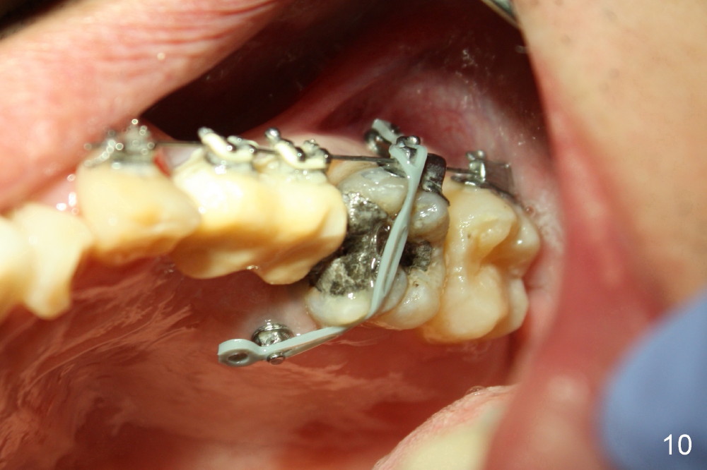 Traditionally a pair of mini-implants are an effective method for intrusion. When they are not, limited orthodontic treatment should be supplemented.