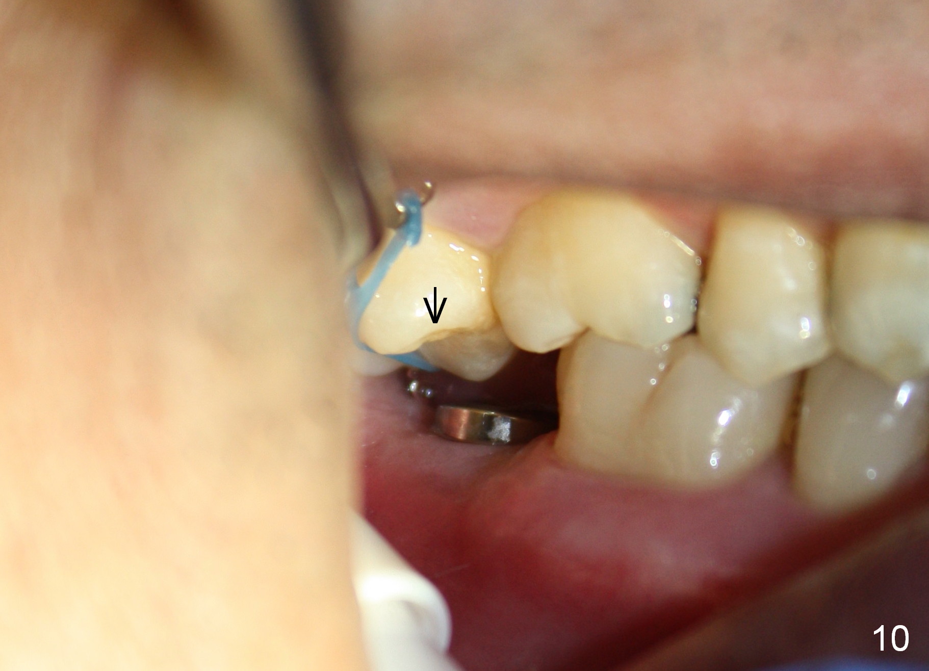 With these two parameters under control, it is quick and safe to finish osteotomy with tapered drills with stoppers (Fig.4 <). Stoppers are particularly useful in the posterior region where visibility is limited. The implant is placed as planned (Fig.5, as compared to Fig.2).