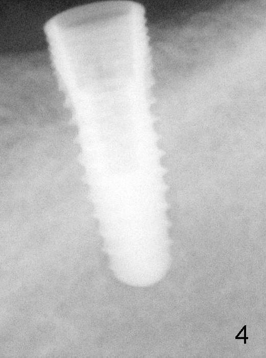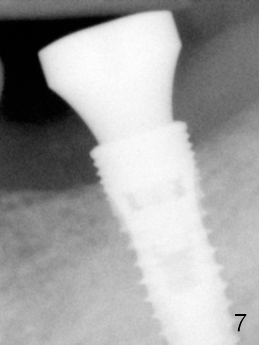 The 1st 4 coronal threads remains outside the bone 3.5 months postop (Fig.7). It appears that less thread exposure (3 instead) 1 year 7 months postop (Fig.8), suggesting bone growth.