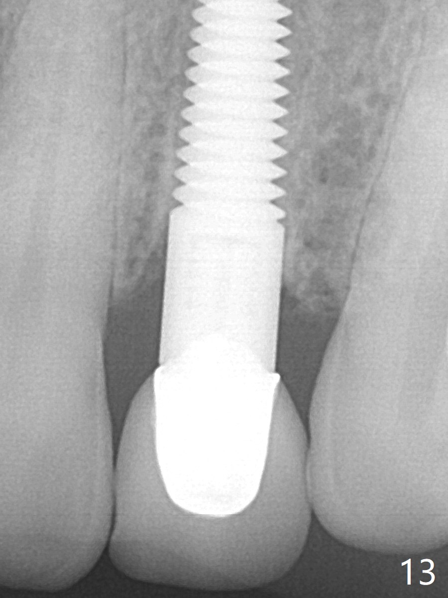 Fig.11: Four months postop. Crest bone appears to have mild resorption (arrow).
