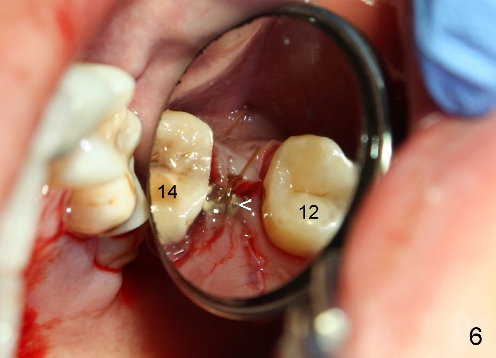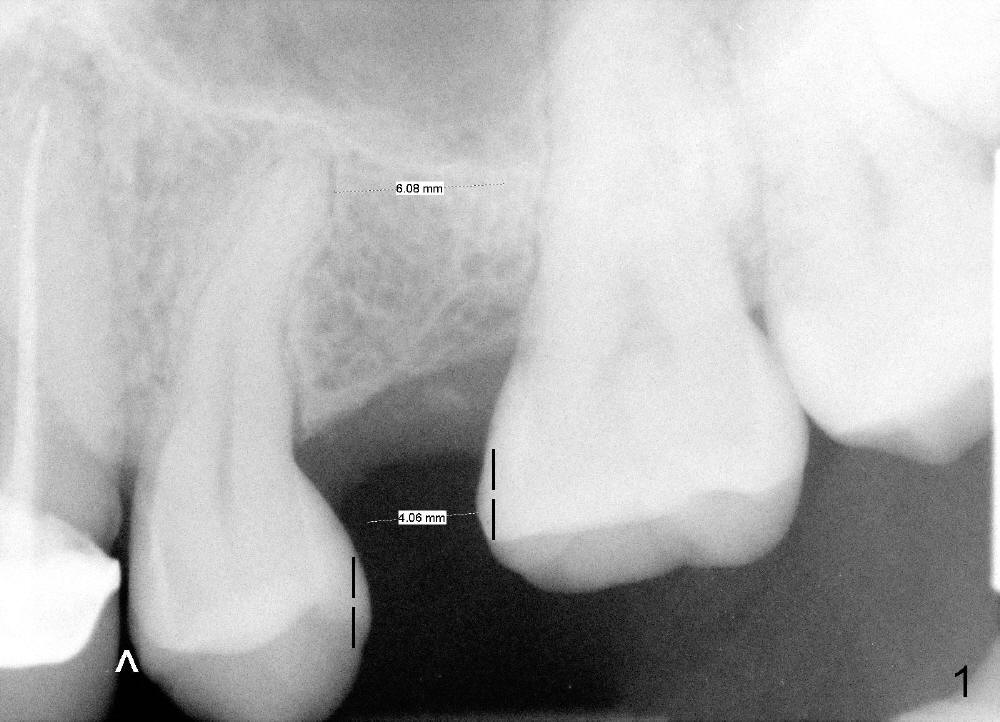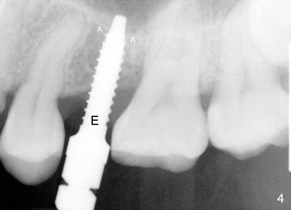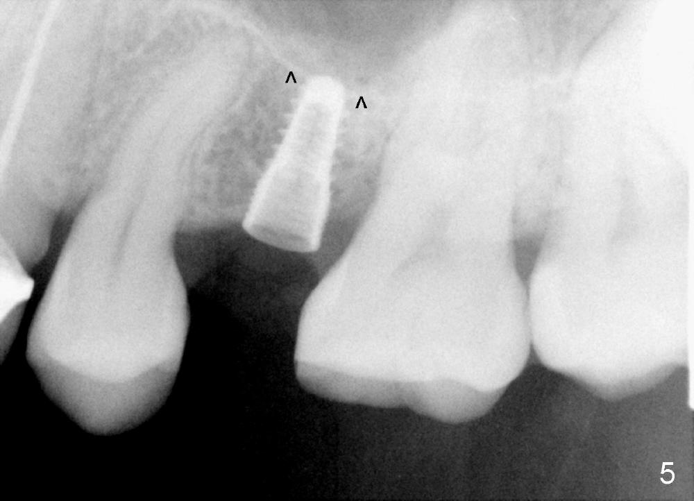 In fact the implant exfoliated 18 days postop. It is probably due to over-preparation. The second placement should try to solve the problem of the over-preparation (2).