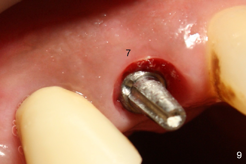 Fig.9 (magnified): Retention groove of the implant and abutment at the site of the tooth #7, one month and a half post immediate implant and immediate provisional.