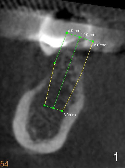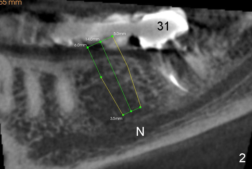 A Caucasian lady has a failing bridge in the lower right quadrant. After sectioning the bridge, the tooth #31 is extracted and an immediate implant is placed (7X11 mm). A 5x14 mm tapered implant is planned to be placed at the site of #30 six weeks later (Fig.1,2). Since the top of the ridge is severely atrophic and the mesiodistal width is quite wide, I wonder whether we should place a D2 or 3 short implant instead. My concern is how to create a D shaped osteotomy without offset D osteotomes, although bone scalpel and bone blade osteotomes can be used to create an initial osteotomy. Thanks.