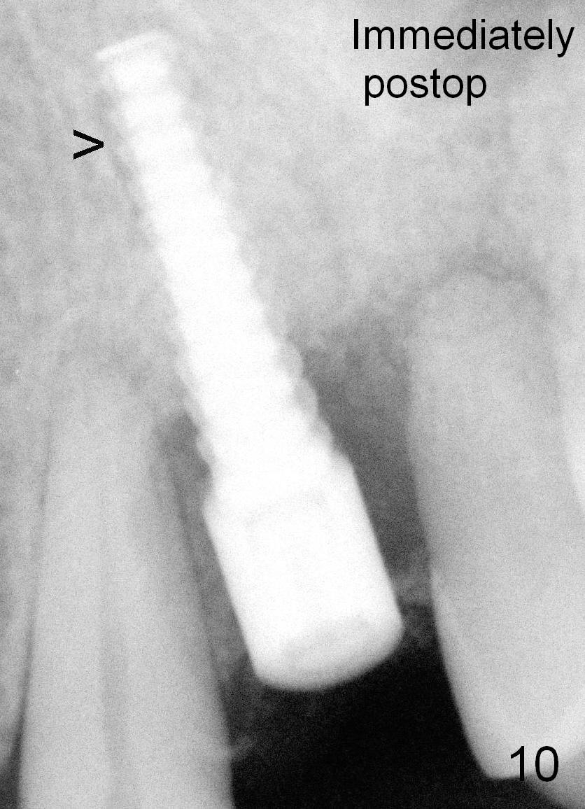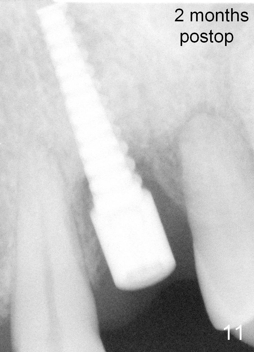 Fig.3,7,10-14 (at the same magnification) show regrowth of crestal bone around the implant postop.