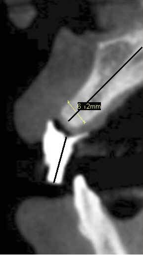 Fig.7 (magnification): the long axes of the drill sleeve for #8 and of the alveolar ridge are not aligned. The width of the ridge is 6.12mm. Back to main text