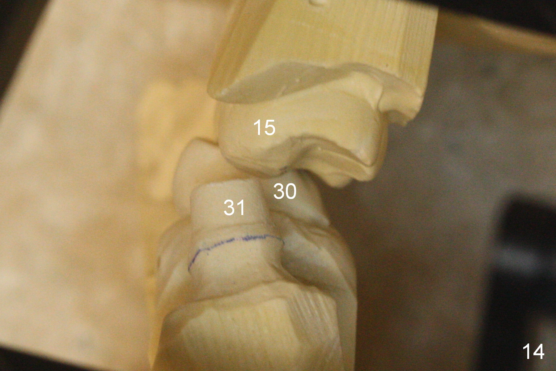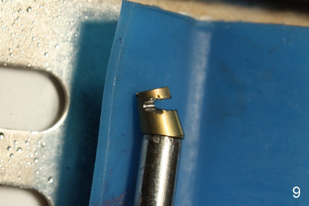 When a 4.5 mm 20 degree short unipost is engaged into the implant, it touches the opposing tooth (Fig.8). The unipost has to be cut (Fig.9). It takes at least 5 minutes to finish. Finally there is enough clearance for crown (Fig.10). This is my first experience to cut the unipost. The good thing is that I learn the shortened unipost does not seem to affect retention of crown.