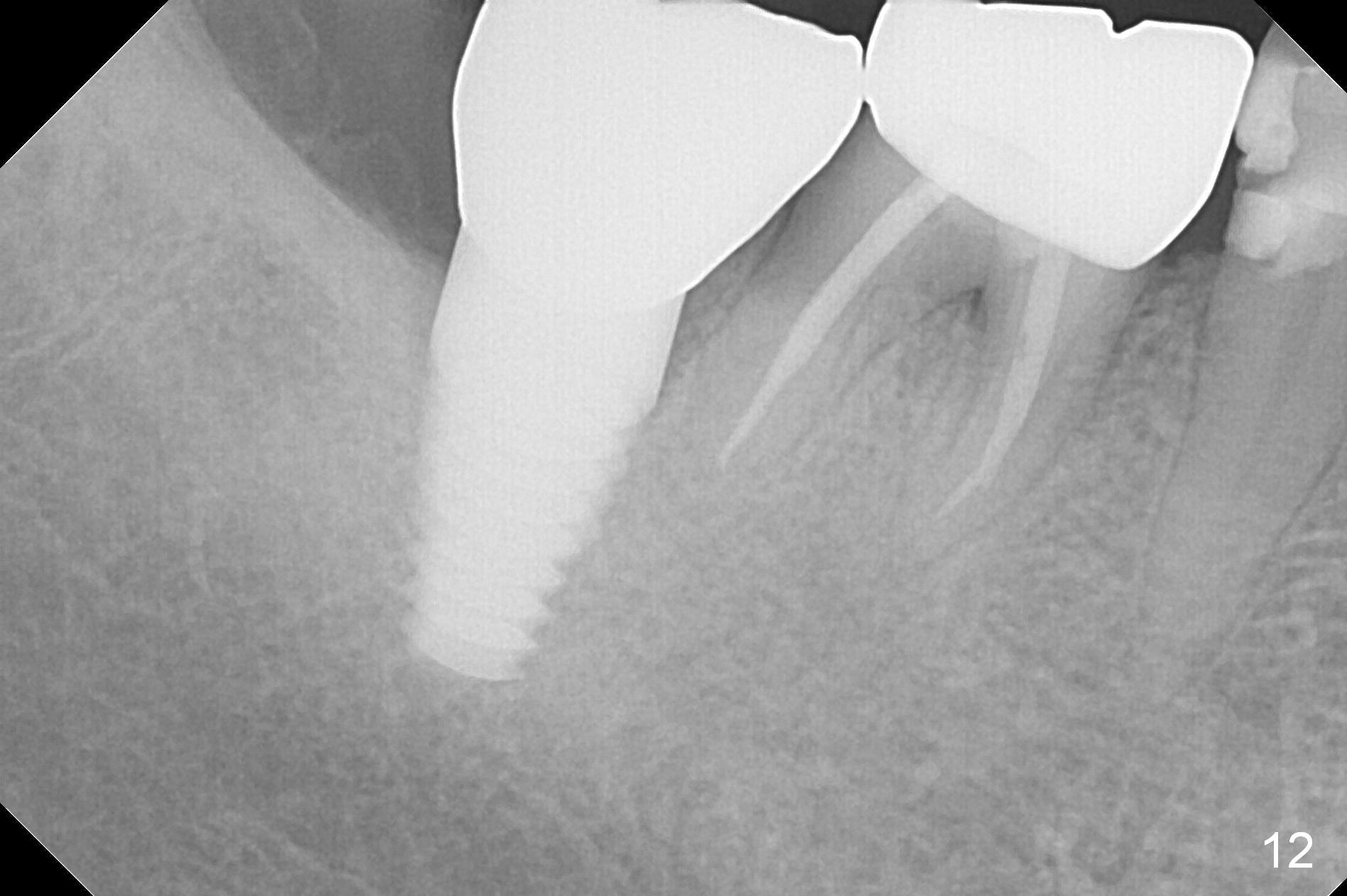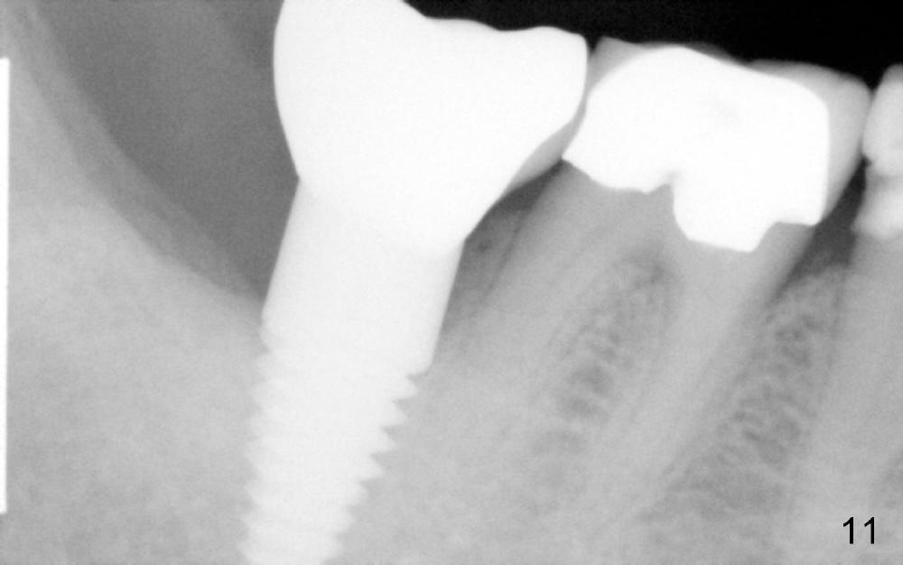 X-ray taken six months after cementation shows that there is no bone loss around the implant (Fig.11).