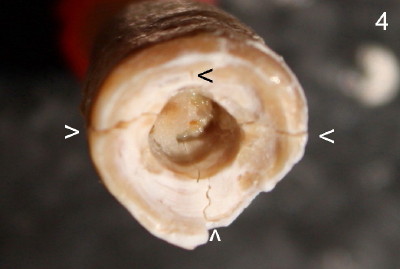 Before extraction, photos were taken, including Fig.1 and 3. One day after extraction, the extracted tooth was examined. Several crack lines were noted (Fig.4 arrowheads). Fig.3 was re-examined carefully. The same pattern of crack lines was confirmed (arrowheads). Luckily we did not try to save this apparently non-salvageable tooth. Careful looking for crack lines could save us trouble!