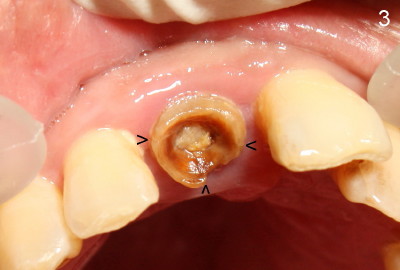 A 37-year-old otherwise healthy gentleman presented to clinic for extraction due to multiple times of crown failure (Fig.1,2). It appears that crown margin is ~2 mm supragingival. After RCT retreatment and fabrication of a little longer cast post & core, the tooth seems to be salvageable. But the patient was adamant in extraction and implant restoration.