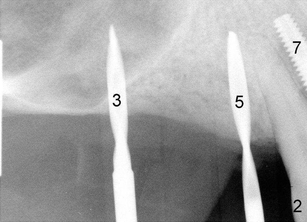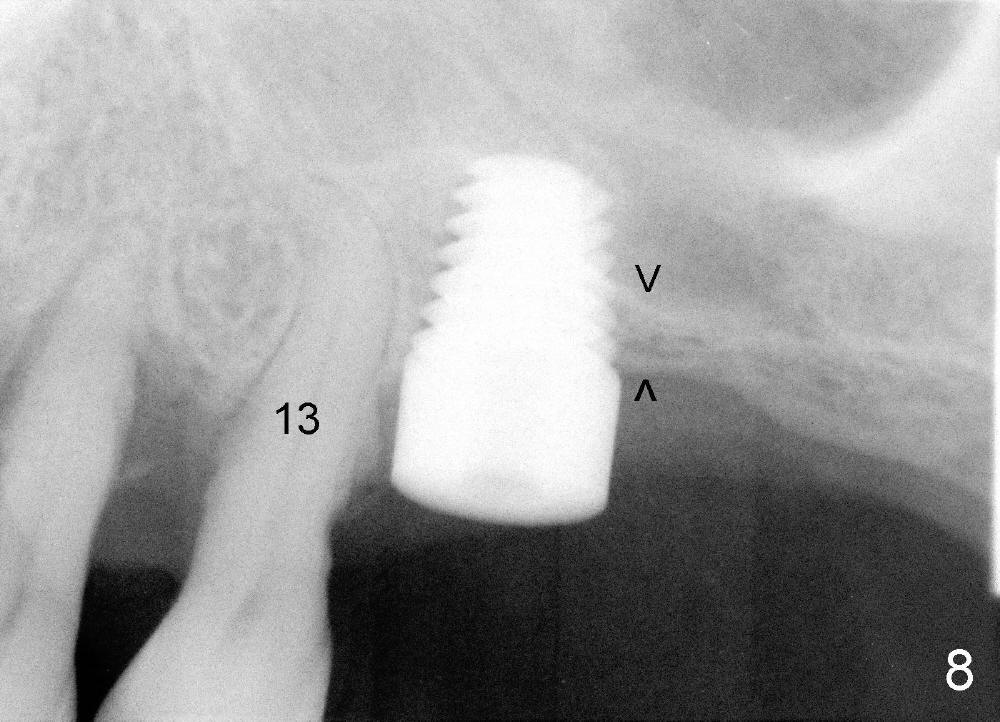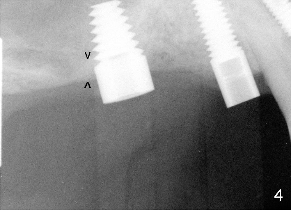 One month later, an implant is placed at #4, which develops periimplantitis 2 year later.