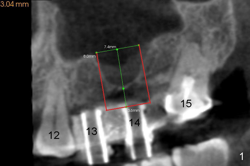 In fact, sinus graft has been tried without success (sinus membrane torn, buccal wall difficult to penetrate). The patient refuses to an offer to get a second trial by an expert such as Drs. Borgner and Dunson. Sinus lift appears to be more acceptable.