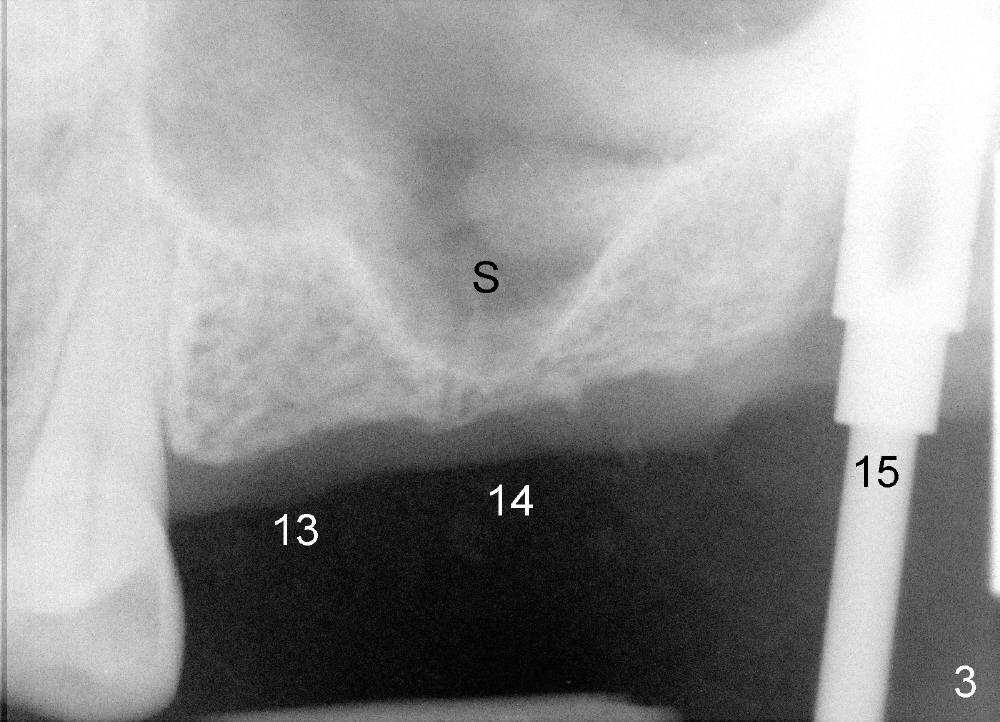 The two cases we discuss early appear to show that implants at the first molar are placed to engage in the mesial aspect of bone to have primary stability (1,2). But sometimes sinus floor may be right above the first molar (Fig.1-4). Fig.1 (CT sagittal) and 2 (coronal) were taken before #15 extraction, whereas Fig.3, 4 (PA) were taken during and immediately after extraction, respectively. A tapered 8x17 mm implant was placed at the site of #15.