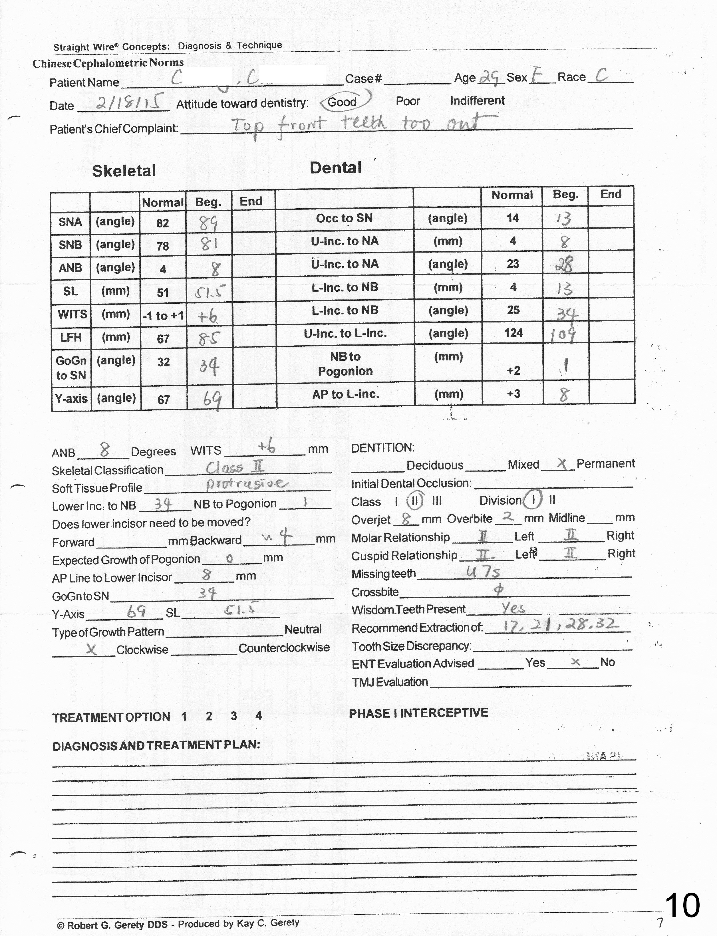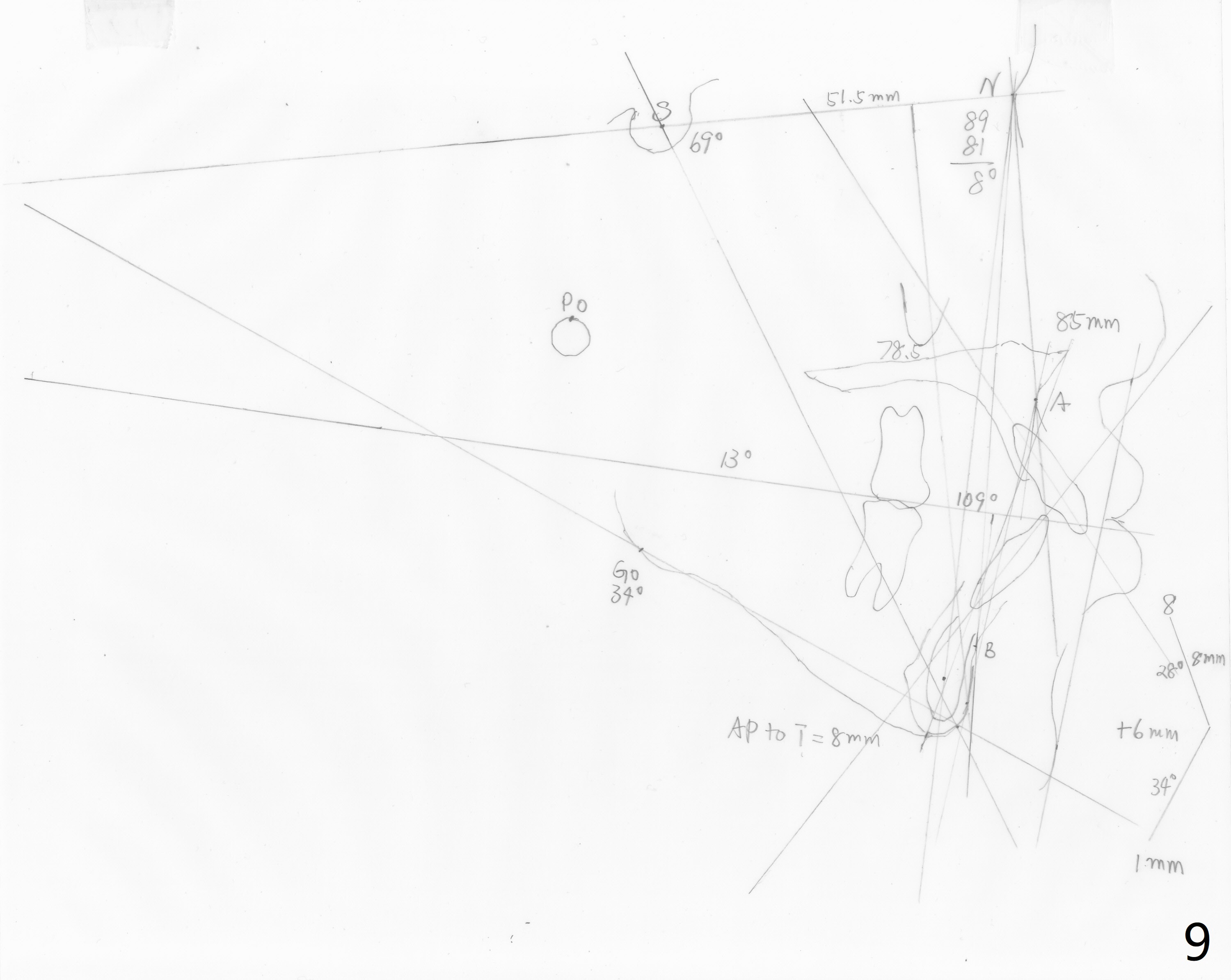 Cephalometric X-ray was taken 02/18/2015. It shows SNA and SNB 89 and 81°, respectively.