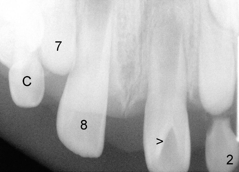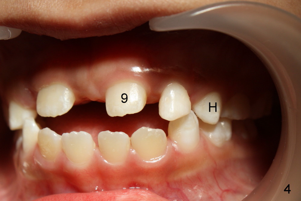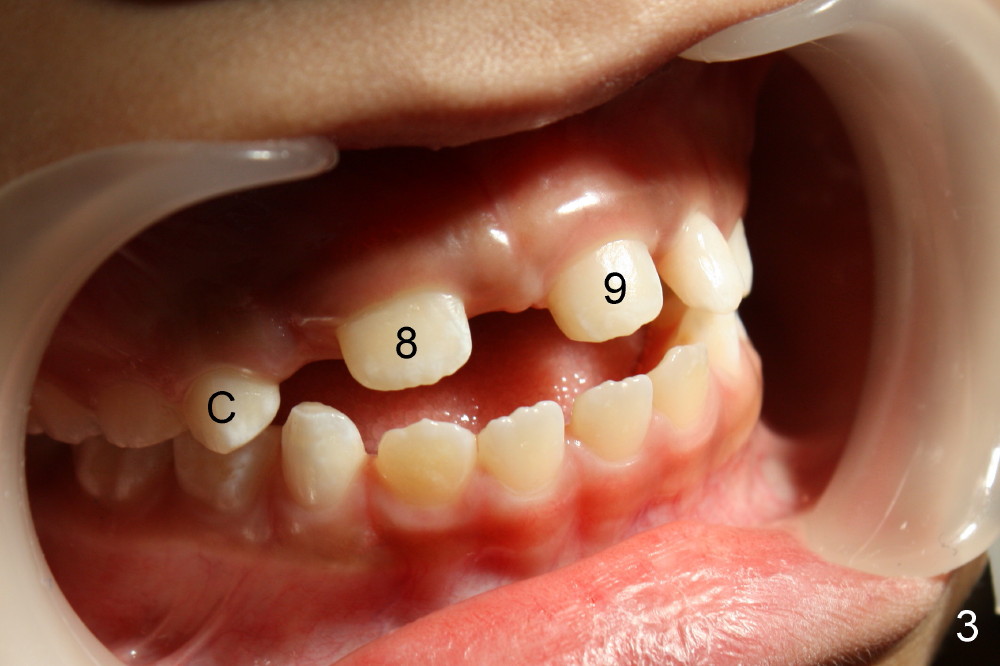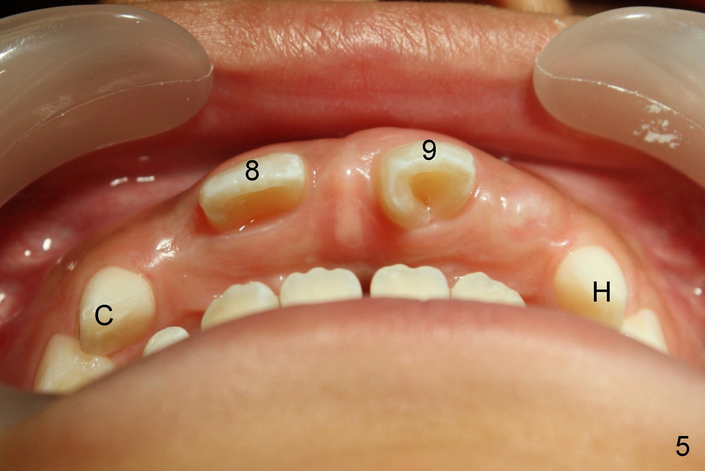 At the age of 7 years and a half, the tooth #10 is going to erupt (Fig.5). The space for #7 is narrower than that of #10. The mom chooses to watch for another six months