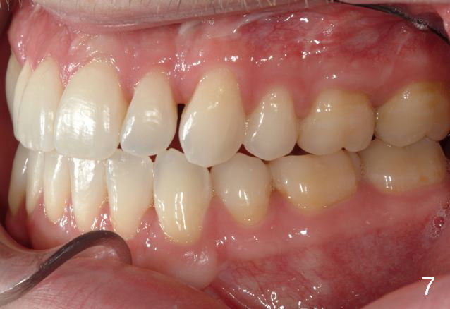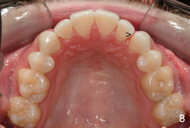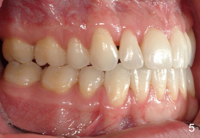 Final photos are taken on 03/23/2016. Mid face deficiency improved, now just a hint (Fig.3). Before (Fig.4,10) and after (Fig.5-9) occlusal adjustment of the canines.