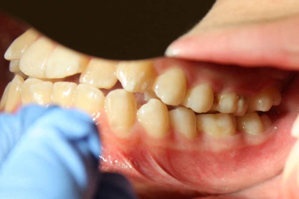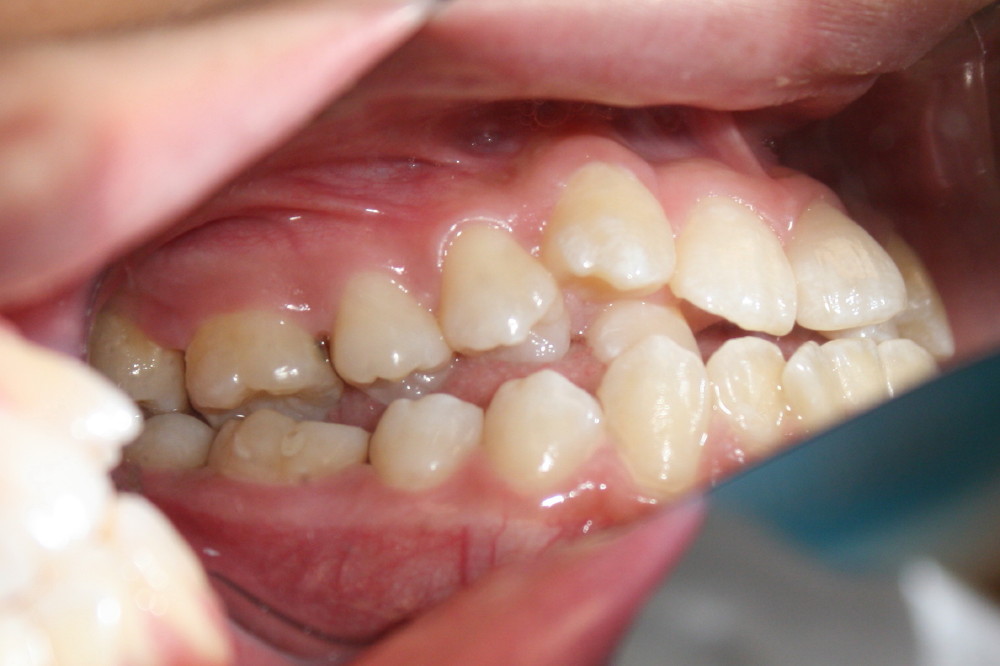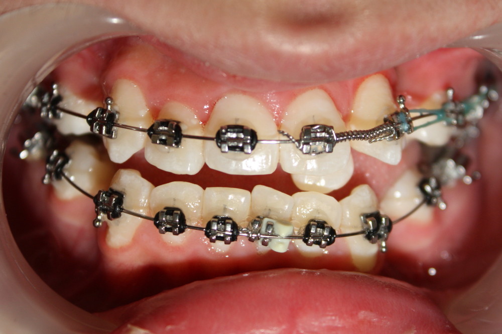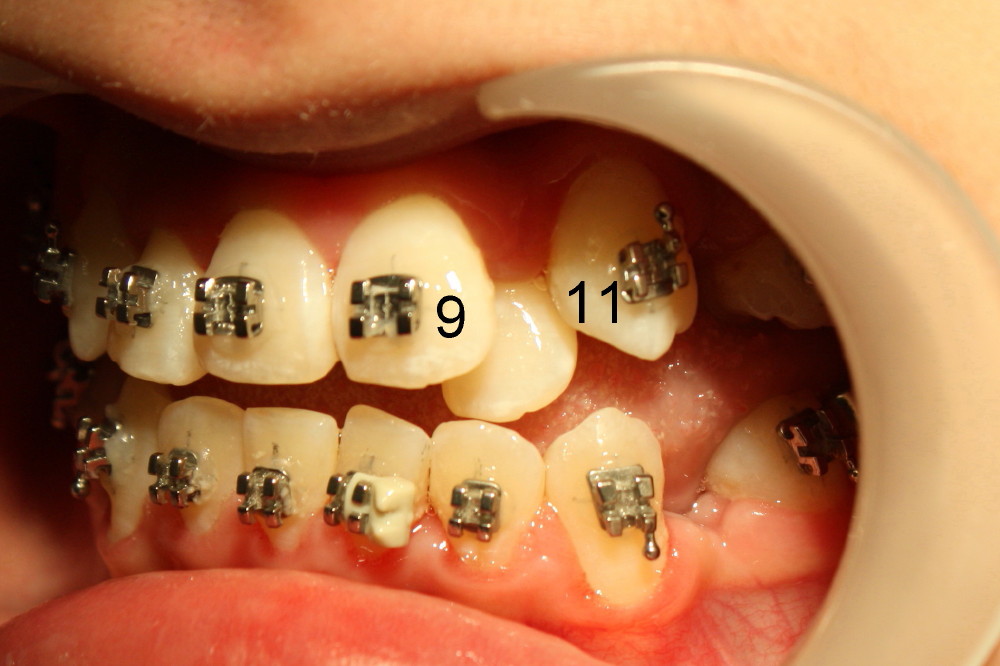 Sixteen-year-old (Fig.1,2,3) has severe crowding (Fig.4), with block out of #10 (Fig.5). He requests ortho and agrees extraction of 4 of the first bicuspids. Prior to banding, bracketing and extraction in the same visit, open bite was noticed in the anterior and left posterior regions (Fig.5,6,7; possible surgery was discussed. The open bite appears to get worse as ortho progresses (Fig.8 (2 months after treatment) and Fig.9,10 (4 months). While gaining space for #10 (Fig.8-10) and moving the upper midline to the right (Fig.2), what can we do to alleviate the open bite? Placing mini-implants to intrude 6s, and 7s, particularly upper or those in the anterior to extrude #11 for example?