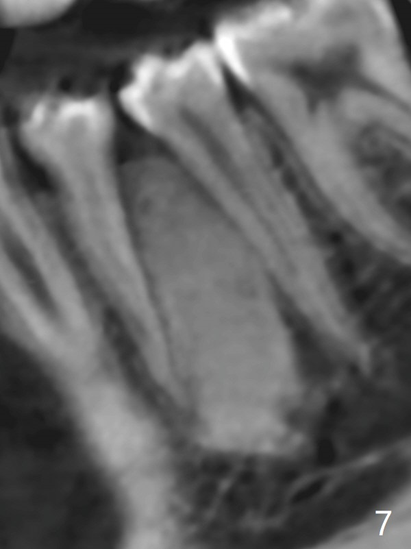 Sagittal (Fig.7) section. It seems that the lesion does not invade the periodontium.