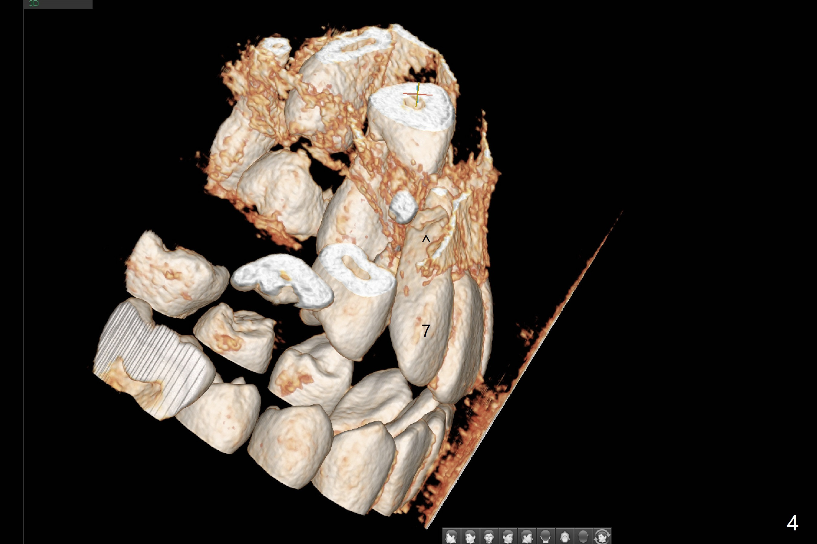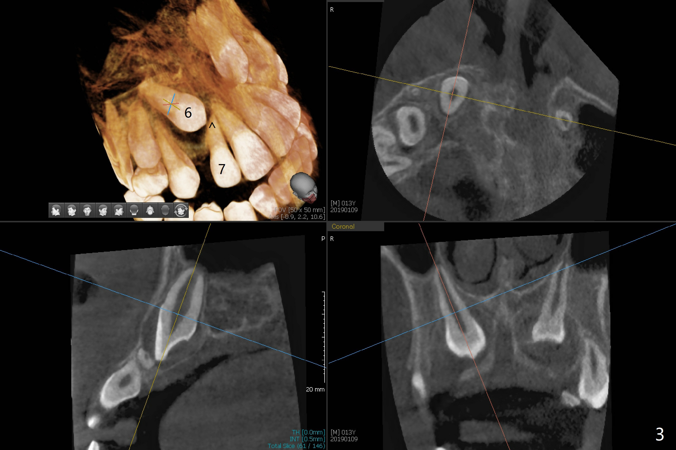 A 13-year-old boy with Class III malocclusion returns with mother from an orthodontic office for extraction of the tooth H with panoramic X-ray taken last year (Fig.1). An interesting finding was present, but not diagnosed a year earlier (Fig.2).