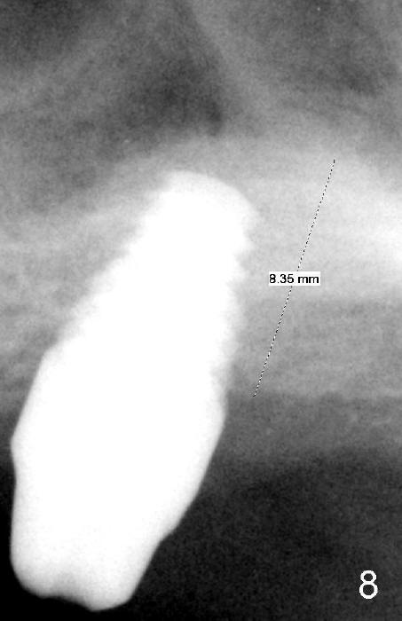 Bone height before (Fig.1) and 4 months (Fig.8) after sinus graft and implantation.