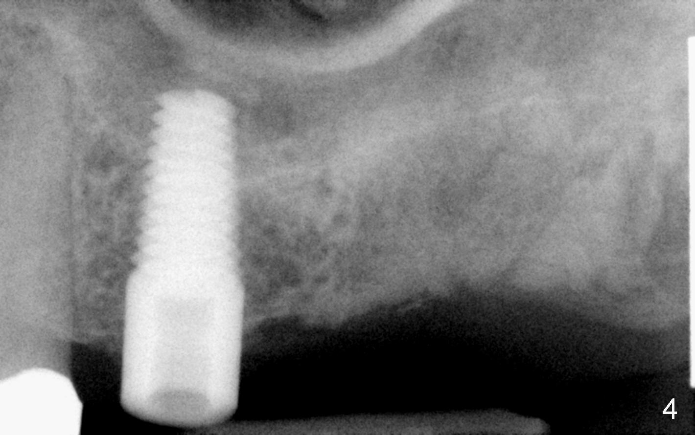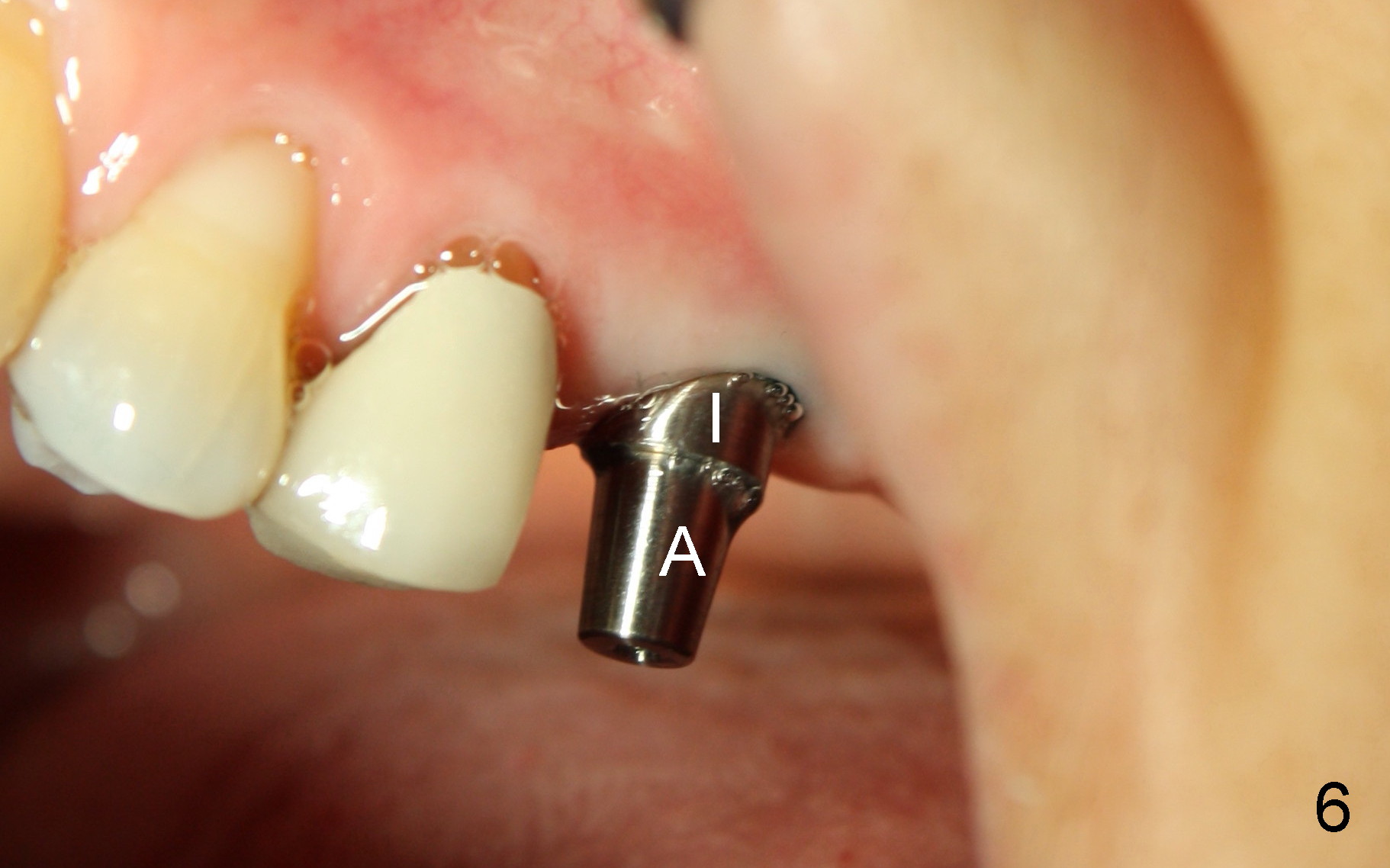 Fig.5, 6 are taken 3 and 4 months post implantation (I: implant; A: abutment).