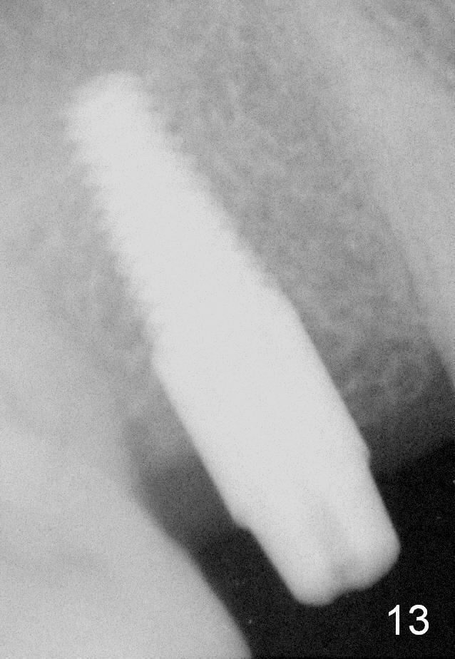 The patient returns for restoration 7 months postop; there is no bone loss (Fig.13).